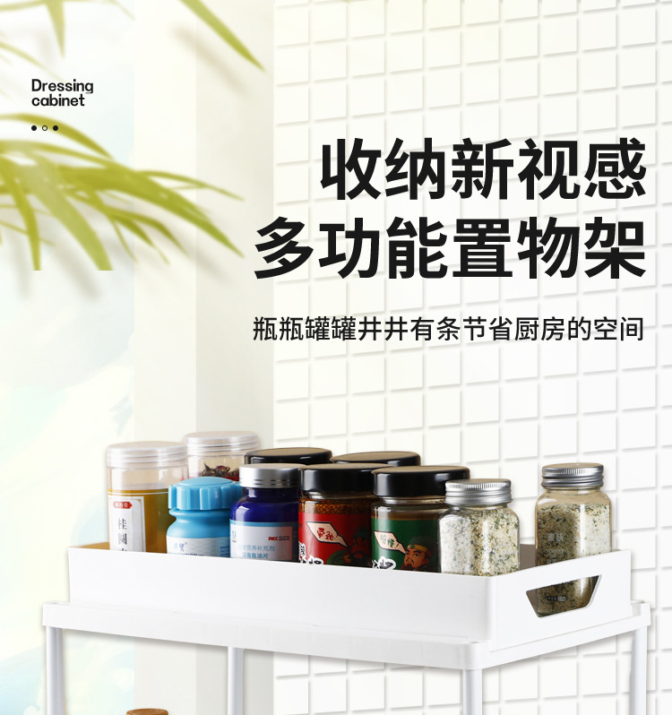 国境を越えた可動式キッチン引き出し二層収納ラック、穴あけ不要、家庭用トイレプラスチック収納ラック