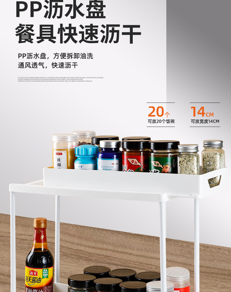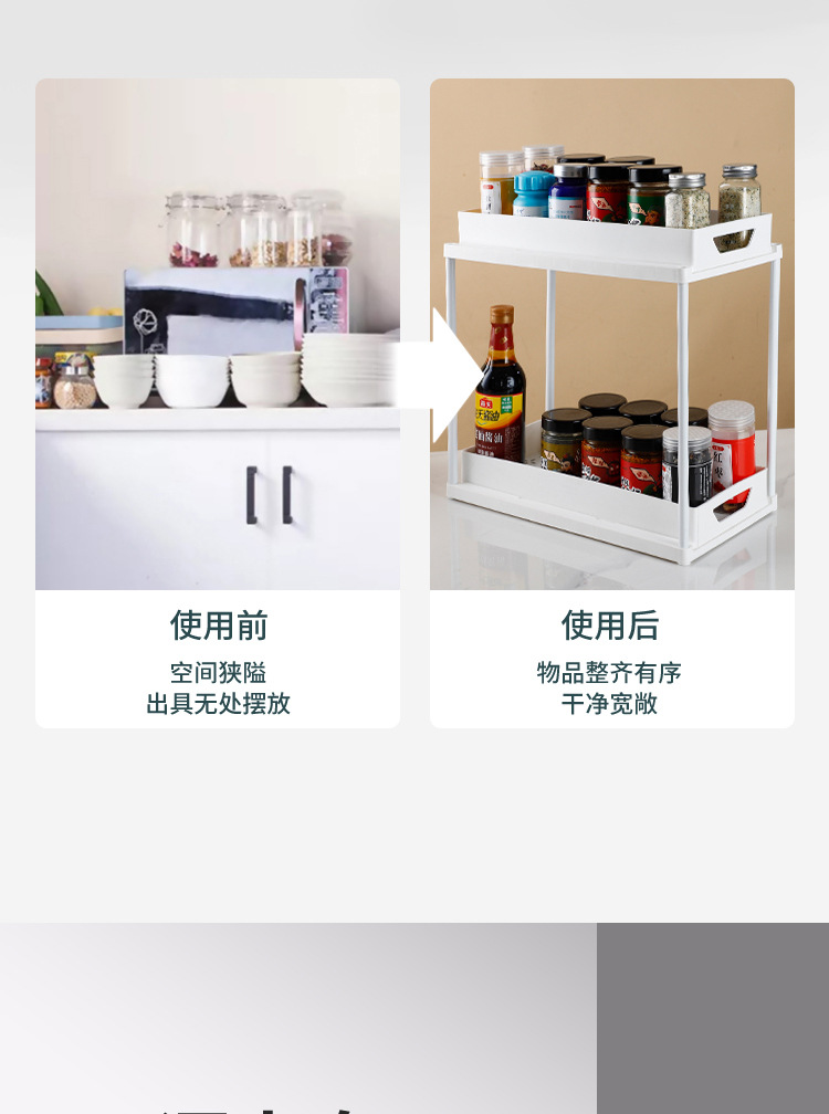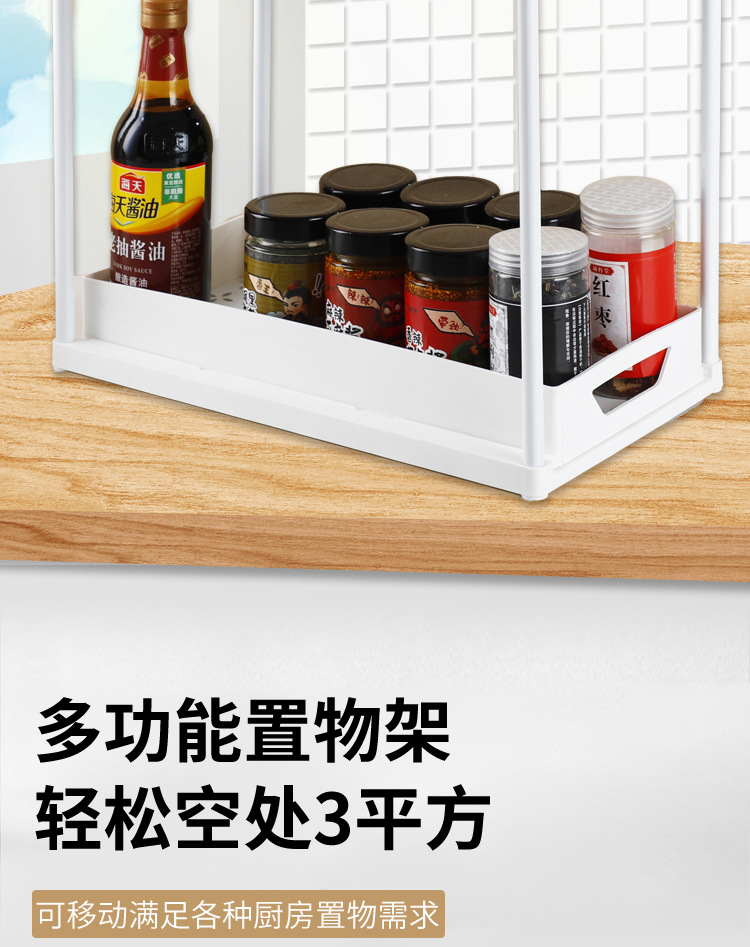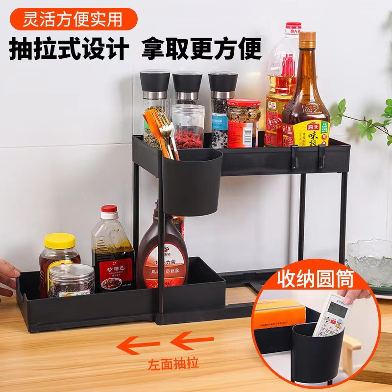 クロスボーダー二層引き出し式収納ラック キッチンカウンター用スライド式調味料収納ラック キャビネット下シンク収納ラック