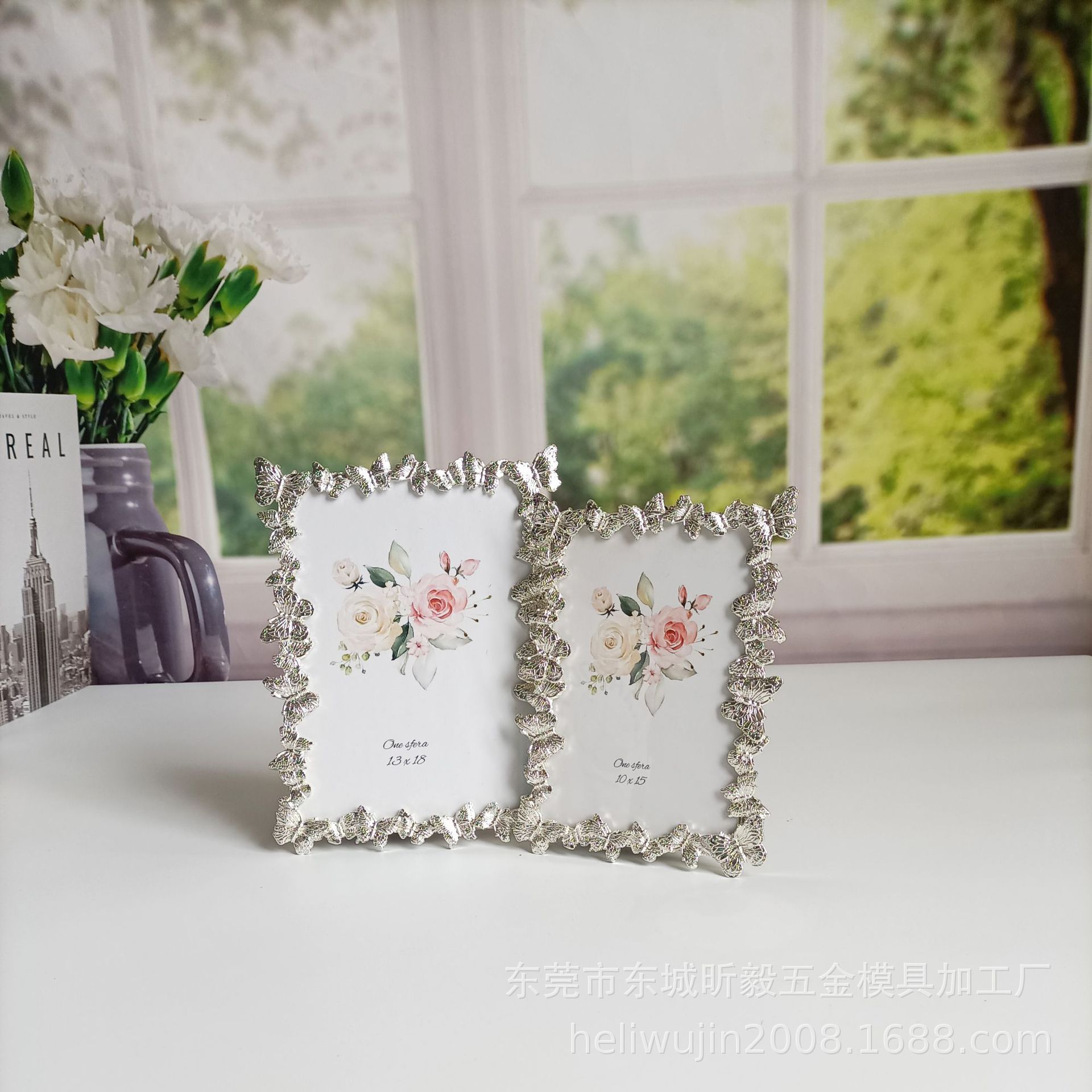 ファッションは簡単で、薄い金色の金属のフォトフレームは台を並べて、影楼のフォトフレーム、合金のフォトフレーム