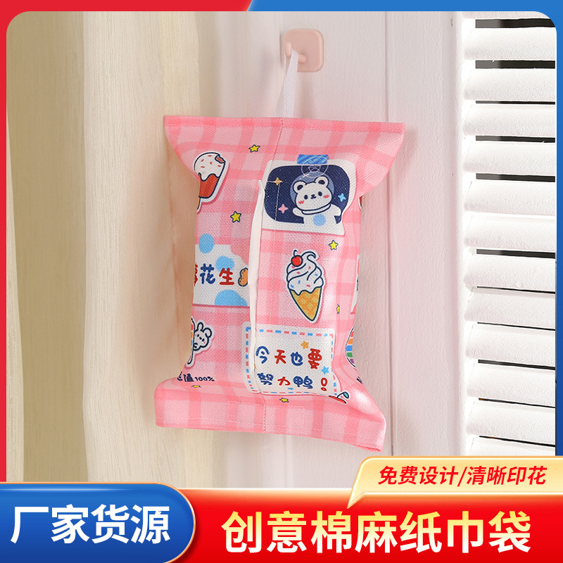 プリントロゴティッシュ箱創意シミュレーション客間トイレ吊り式車載ベルベット綿麻インスタントティッシュバッグ