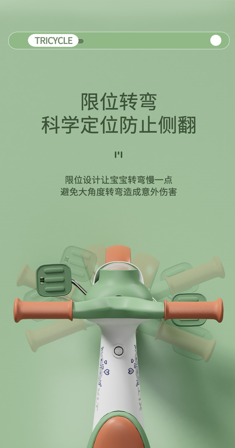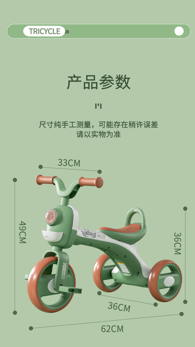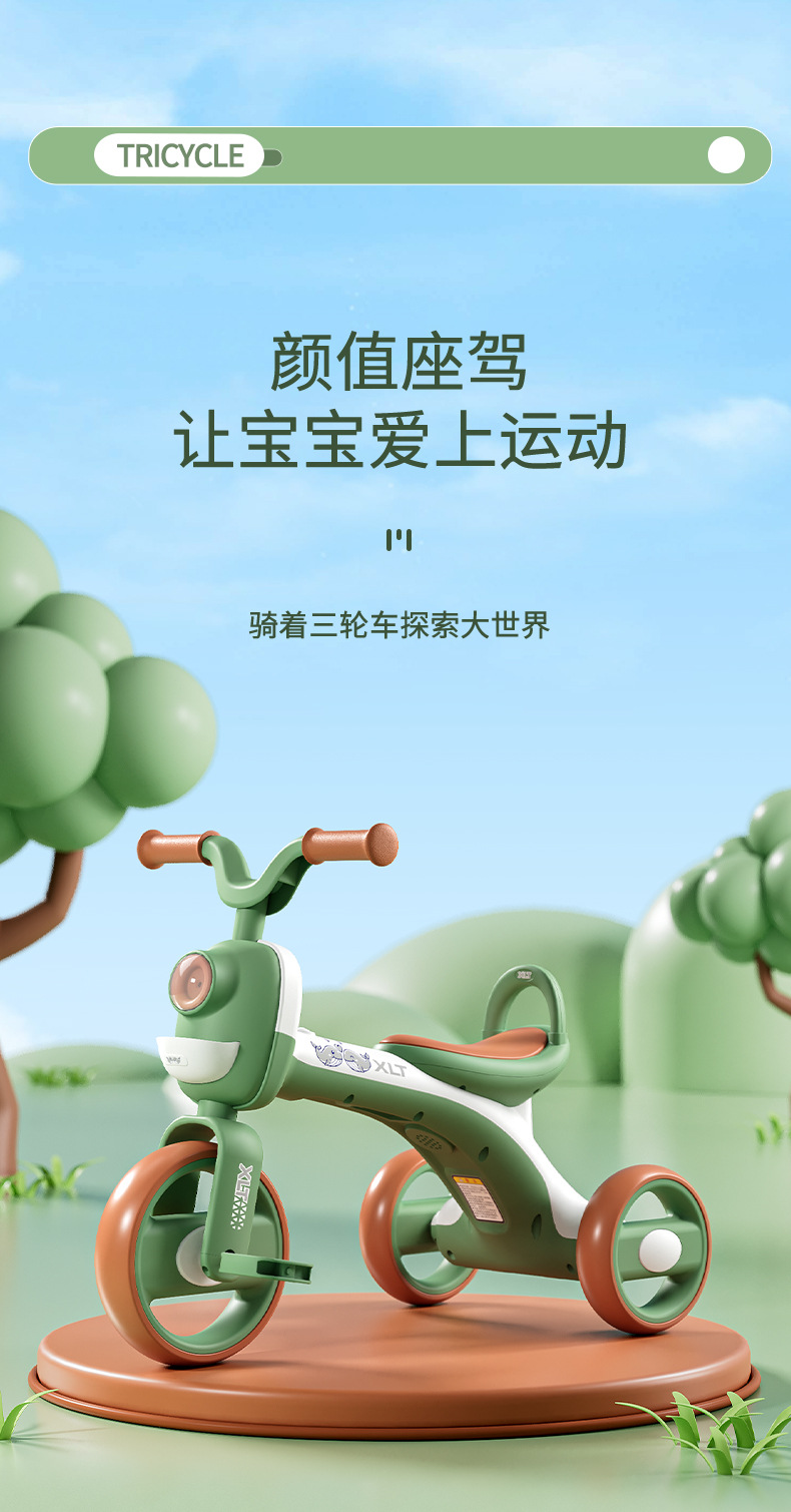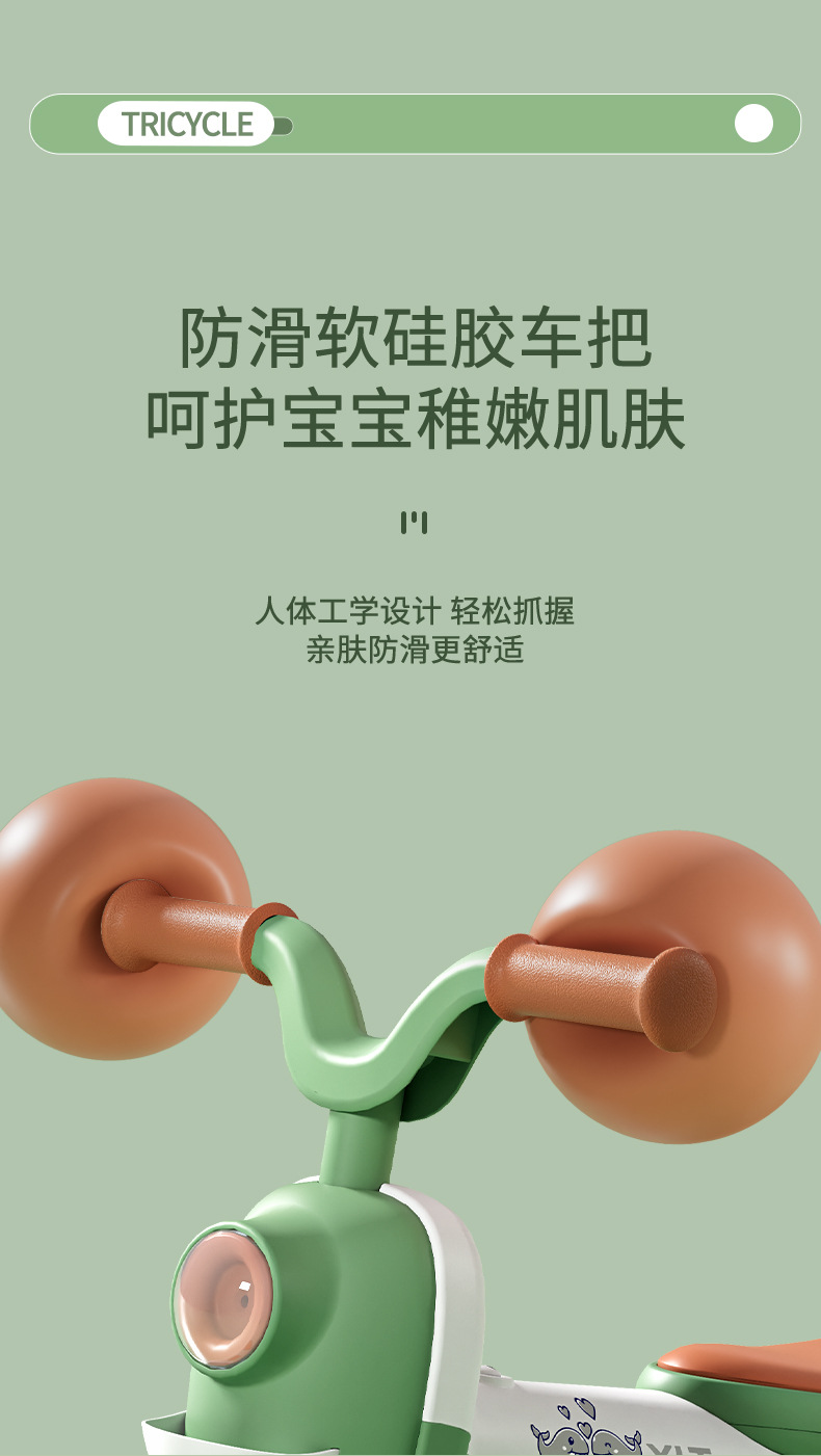 巴布豆儿童三轮车-岁宝宝脚踏车滑行车小孩带音乐自行车可坐遛娃