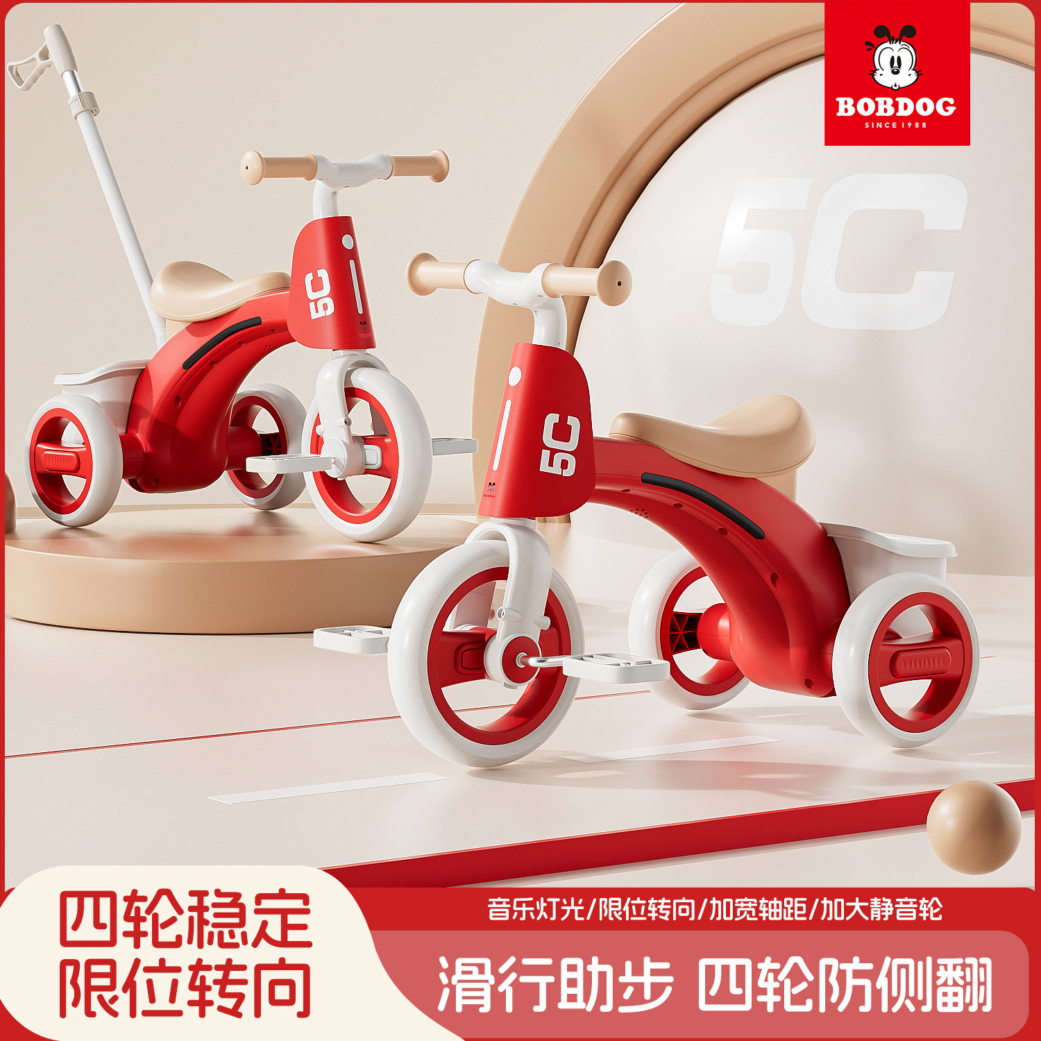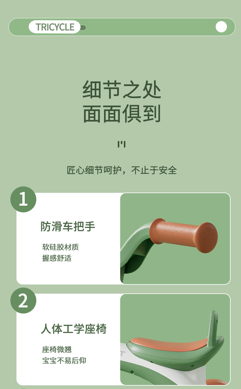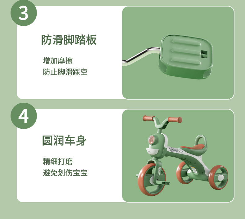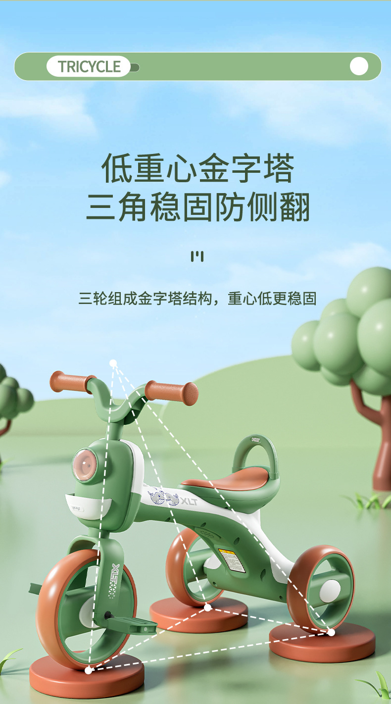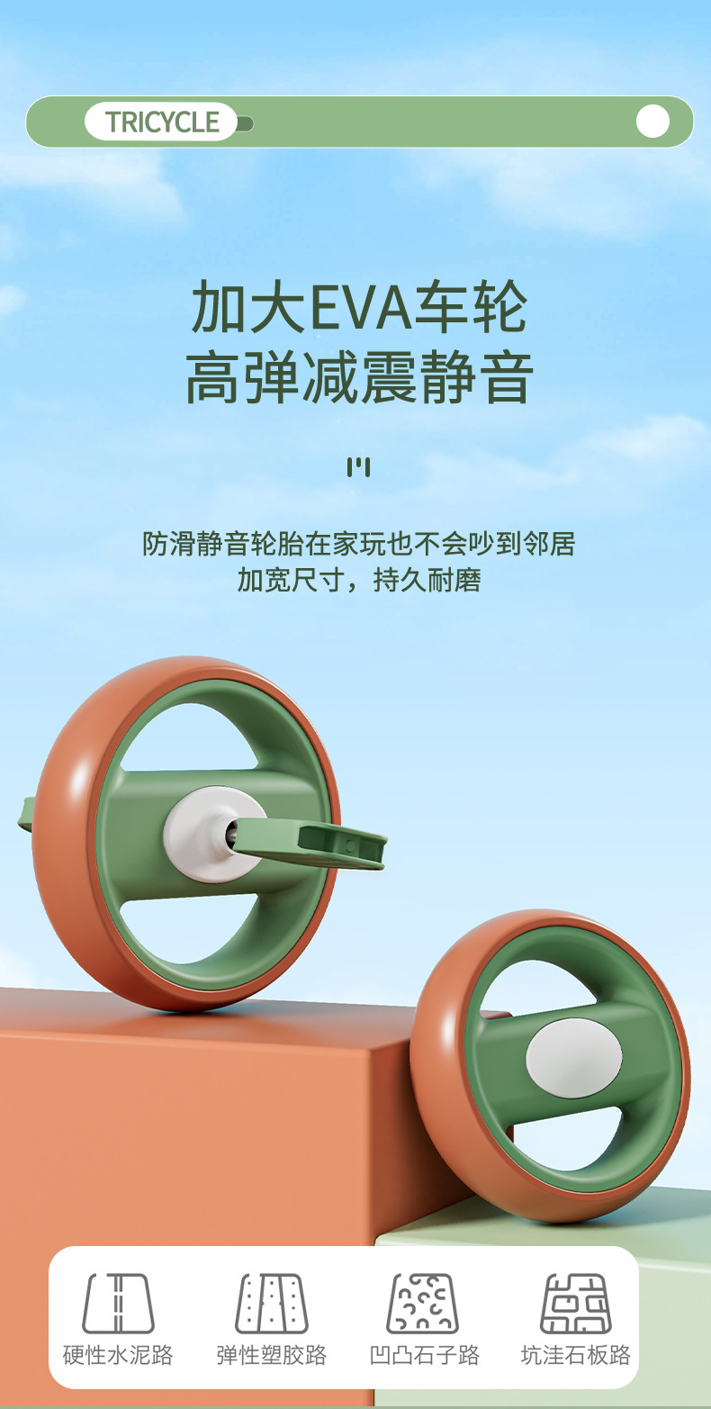 巴布豆儿童三轮车-岁宝宝脚踏车滑行车小孩带音乐自行车可坐遛娃