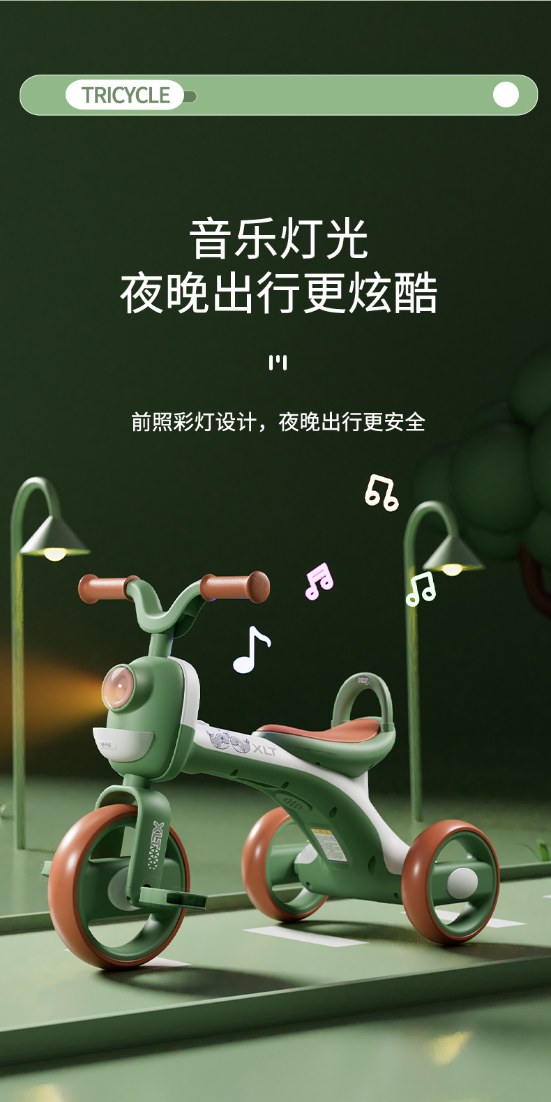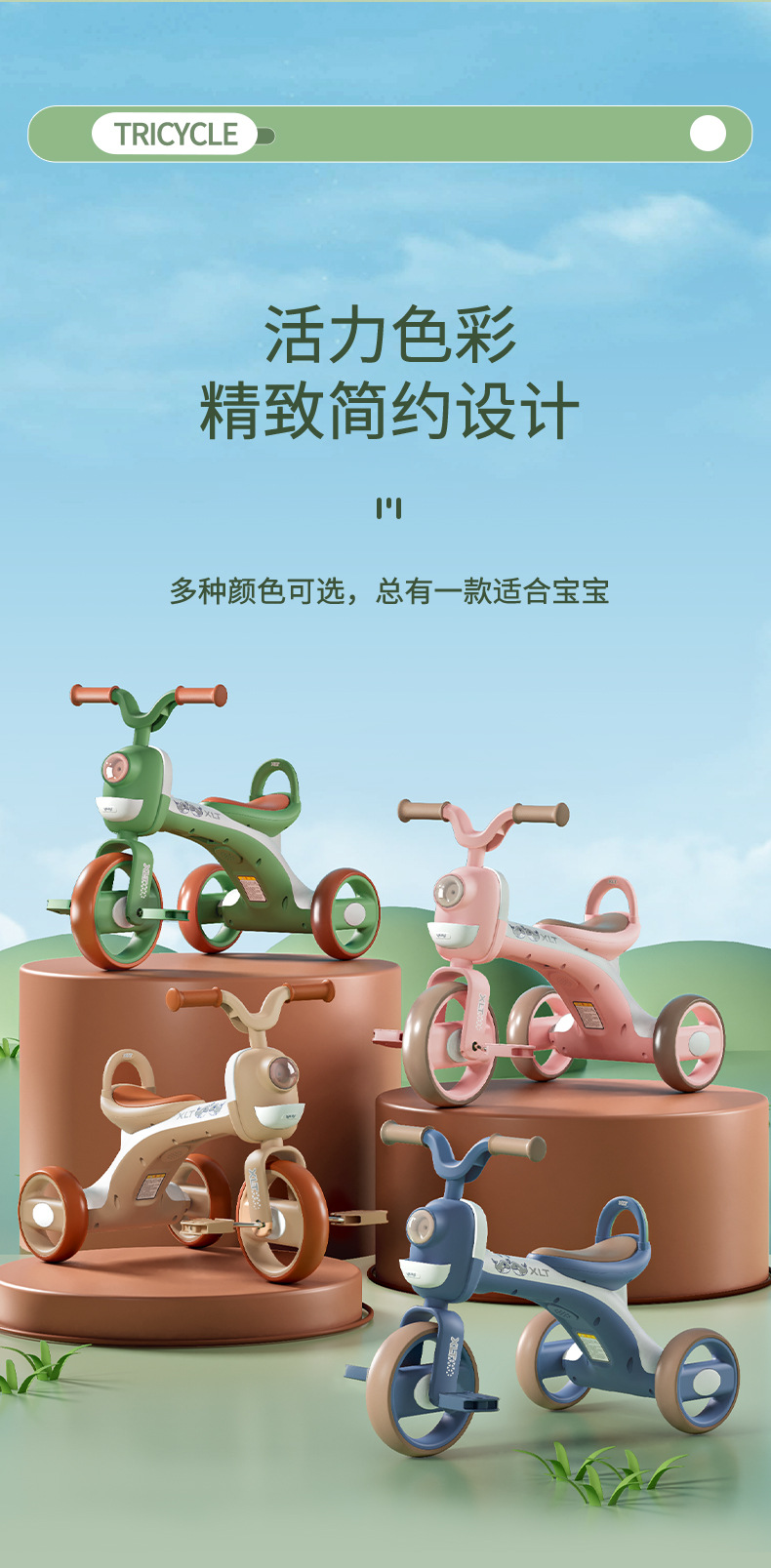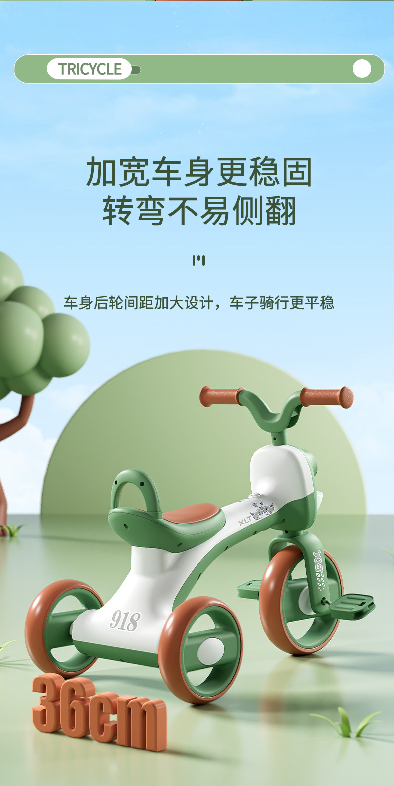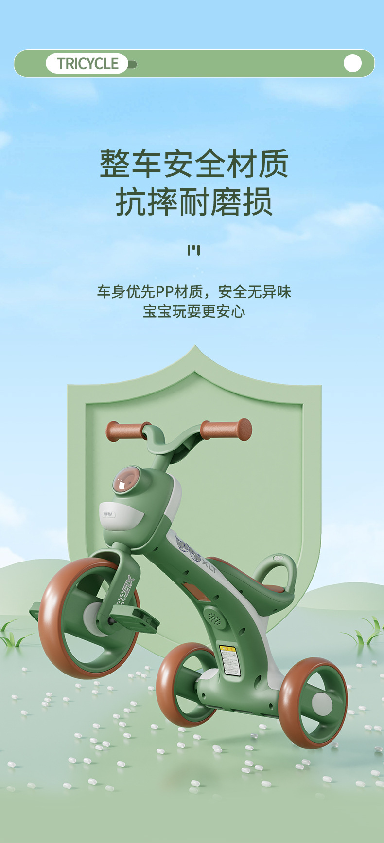巴布豆儿童三轮车-岁宝宝脚踏车滑行车小孩带音乐自行车可坐遛娃
