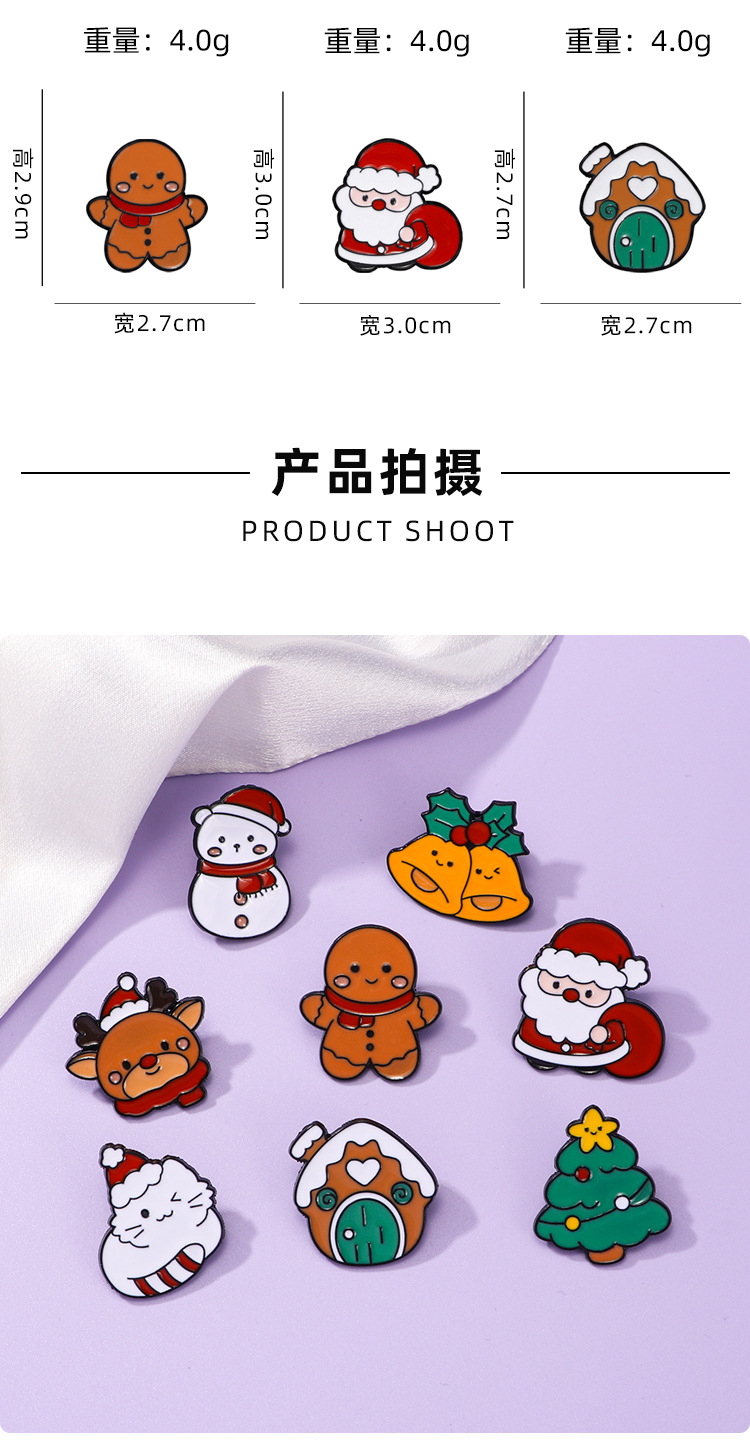 オリジナルクリスマス祭りブローチinsかわいい漫画ヘラジカ雪だるまサンタクロース祭りパーティーバッジアクセサリー