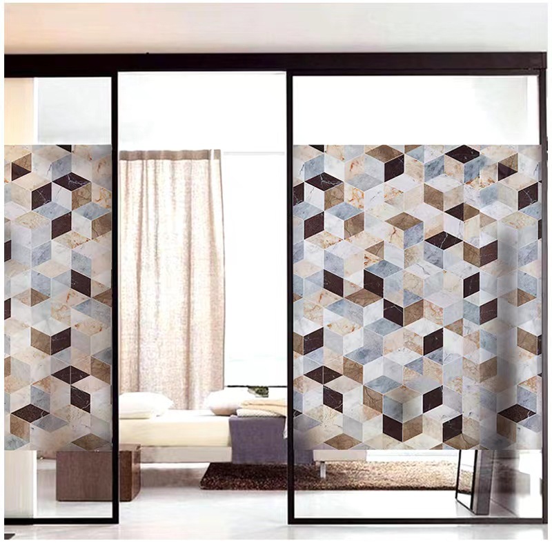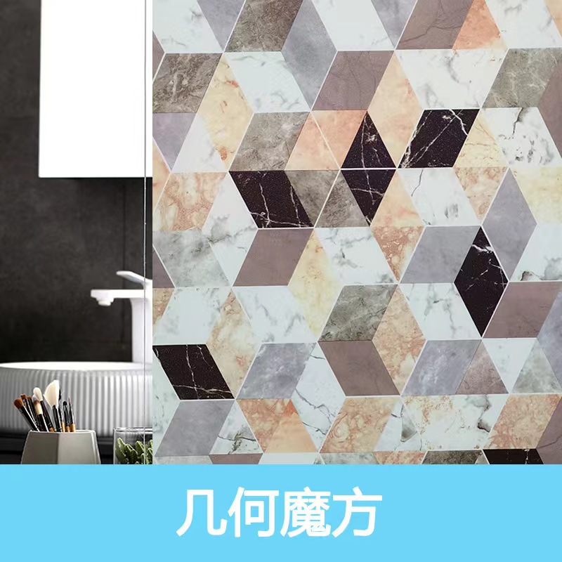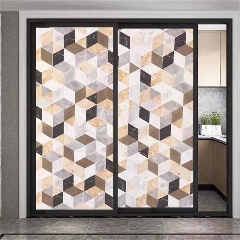 静電フリーガラスフィルム幾何学ルービックキューブ台所家庭用覗き防止フィルム透明透明ガラスシール