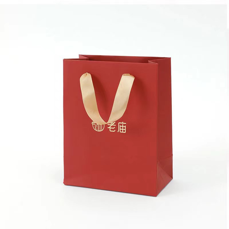老鳳祥ジュエリーボックスギフト包装袋金色のマット紙袋結婚式の金ジュエリーハンドバッグ収納