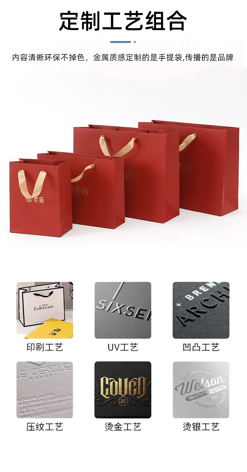 現物高級金色手提げ紙袋箔押しジュエリー包装袋化粧品服装広告ギフト袋