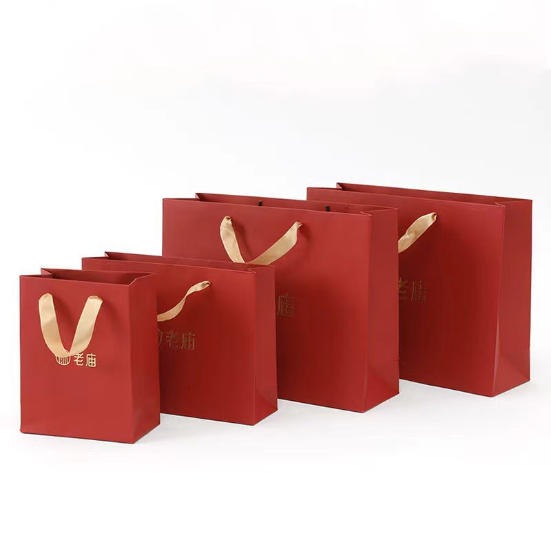 ジュエリー手提げ袋ワインレッド深紅特殊紙の美しいギフト紙袋ゴールデンウイーク * 福箔押しロゴ