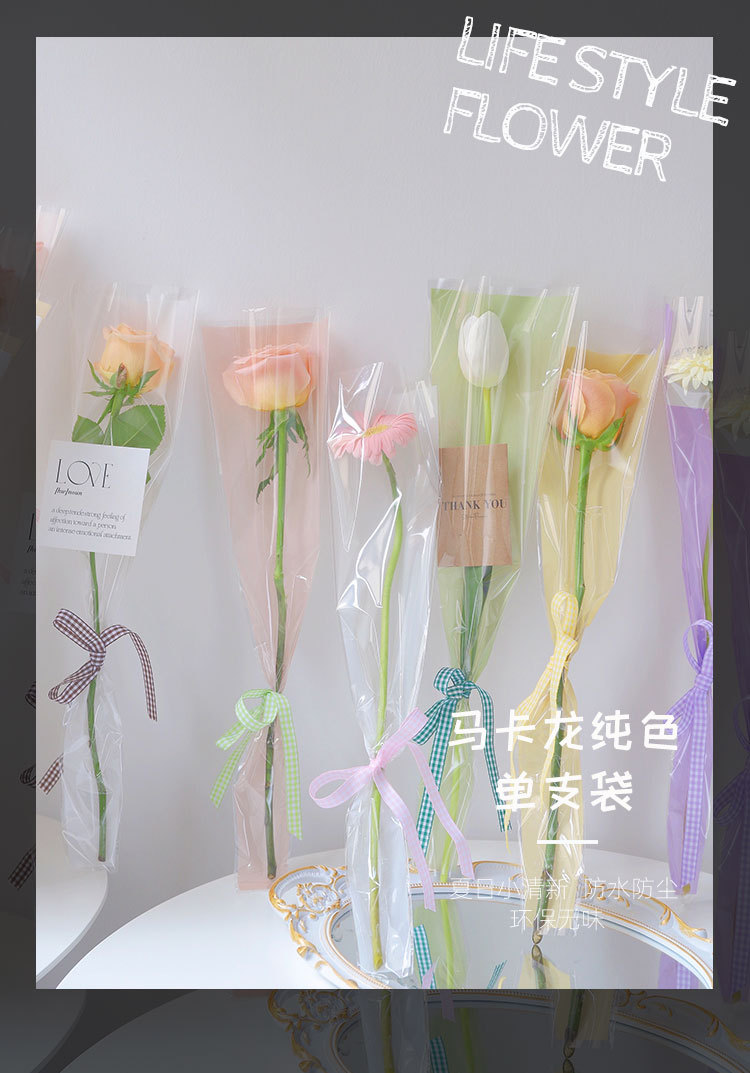 花煕花マカロン純色花束単枝袋透明oppバレンタインデー花包装材料花芸資材
