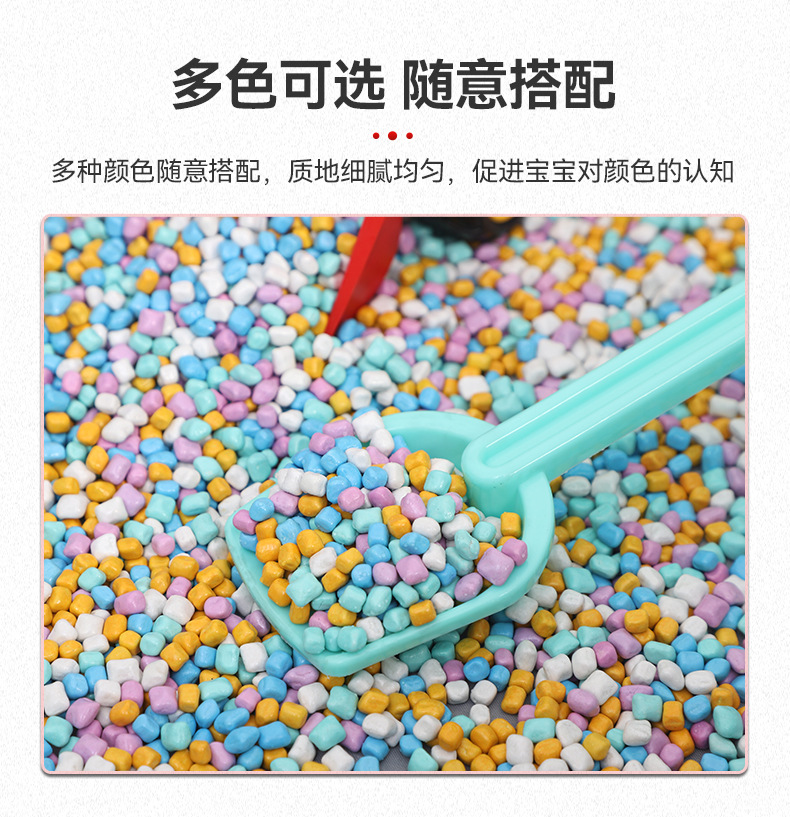 磁器の砂の遊園地の砂の決明子の大谷の粒をまねて子供のおもちゃの砂の陶磁器の砂の砂浜の5色の粒を洗うことができます。