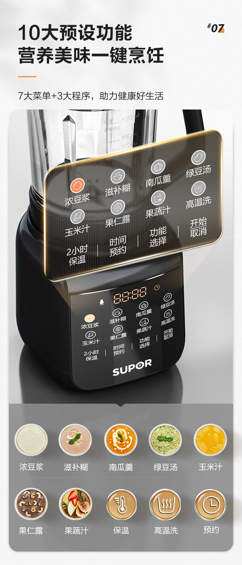 蘇泊爾破壁機SP503A家庭用多機能知能予約加熱破壁料理機ミキサー