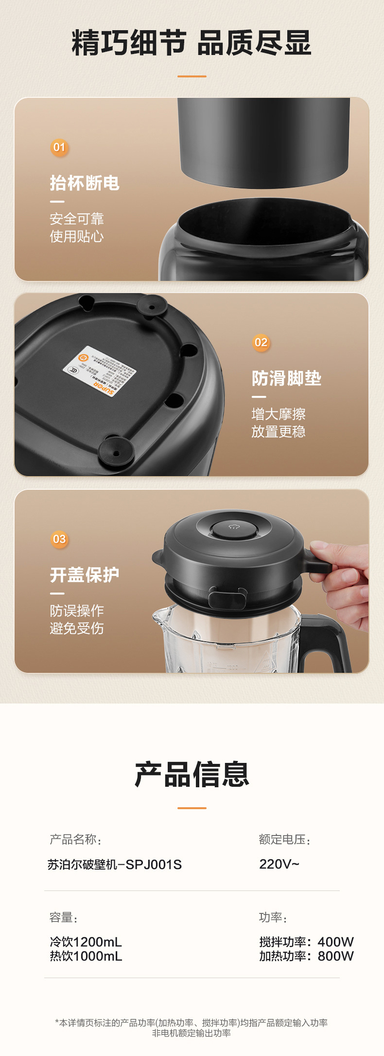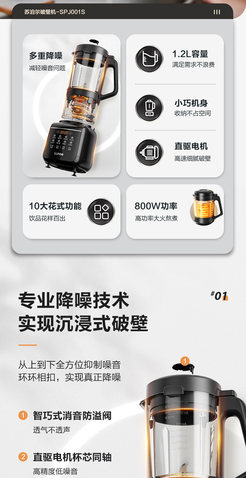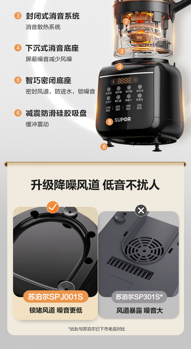 SUOBERI苏泊破壁机家用全自动静音新款豆浆机多功能榨汁无渣养生