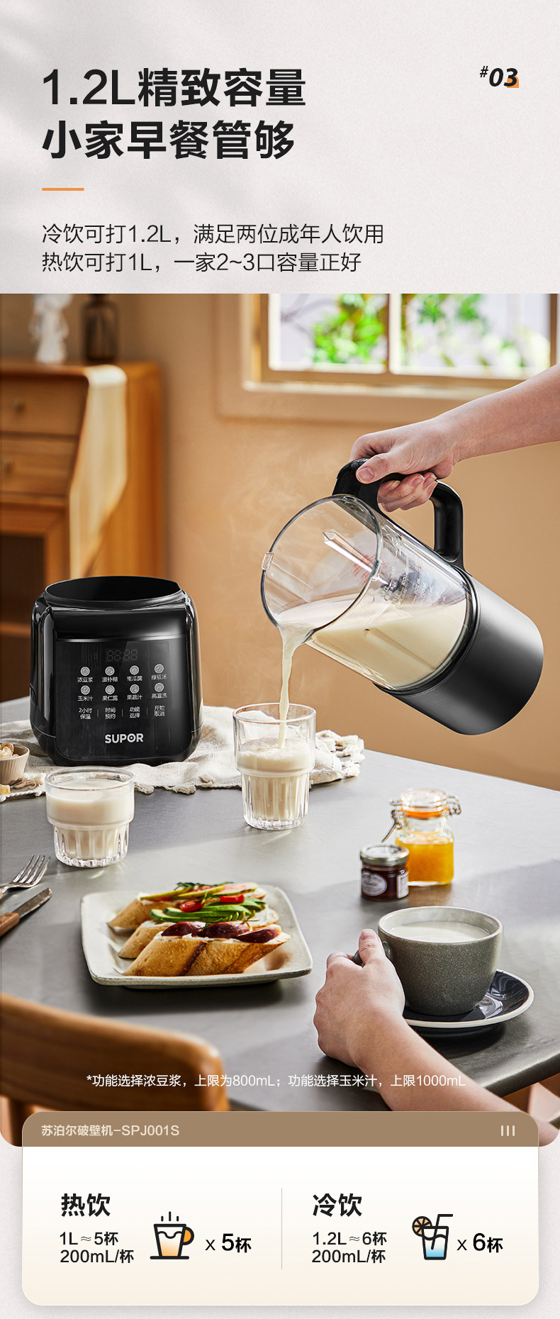 蘇泊爾家庭用破壁機1.2l豆乳機加熱多機能ジューサー補食ミキサーspj001s
