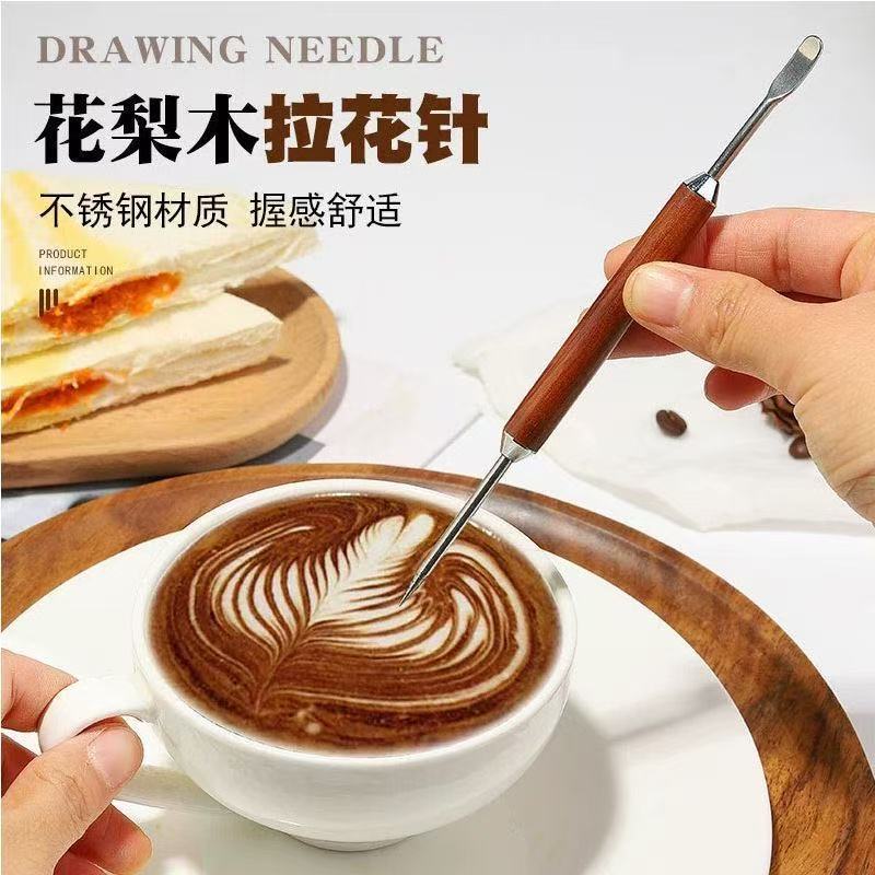 304コーヒーラテアートニードル、彫刻棒、ラテアート器具、コーヒー器具、紫檀柄彫刻両頭ラテアートニードル
