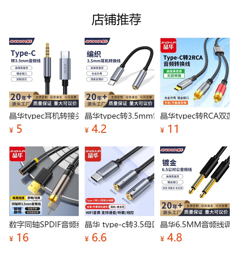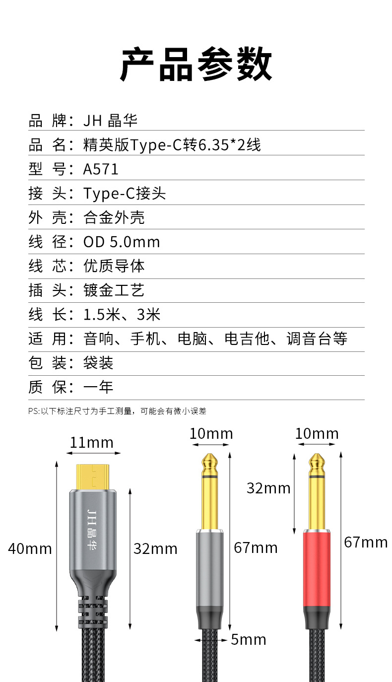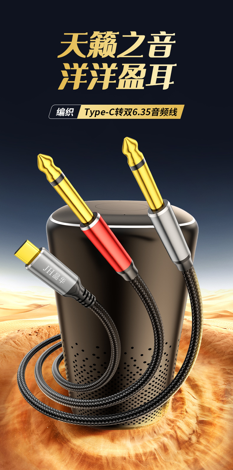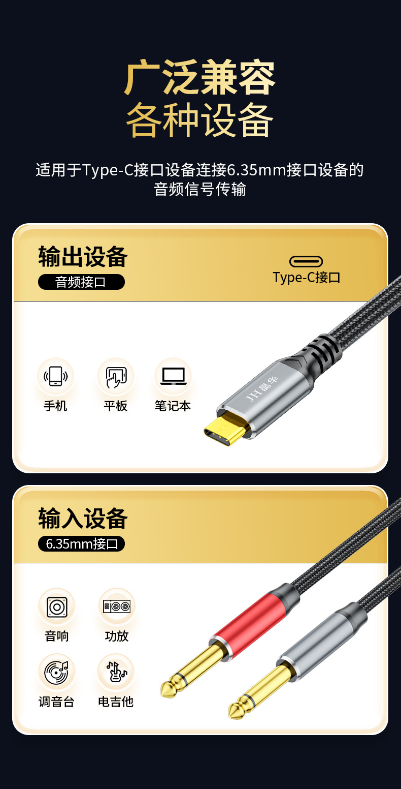 Jinghua typec デュアル 6.35 オーディオケーブル携帯電話から 6.5 オス - オスアルミ合金電子オルガンアンプスピーカーケーブル