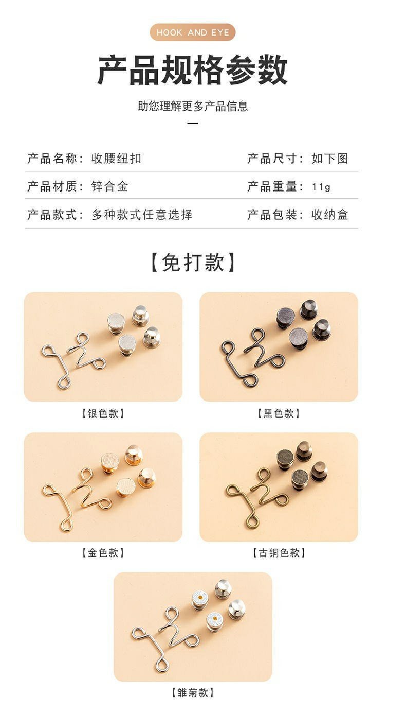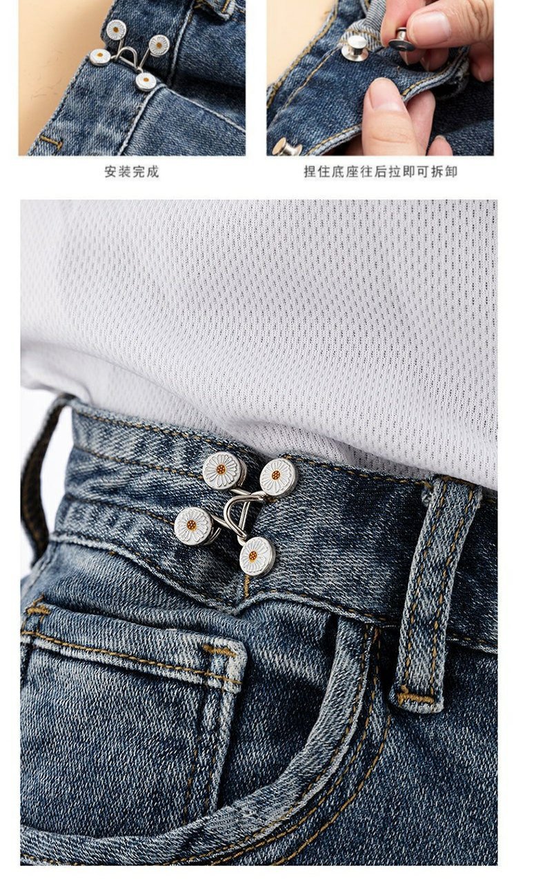 平底ウエスト神器釘なしボタンはジーンズのウエストサイズを大きく変えてボタンを締めます。
