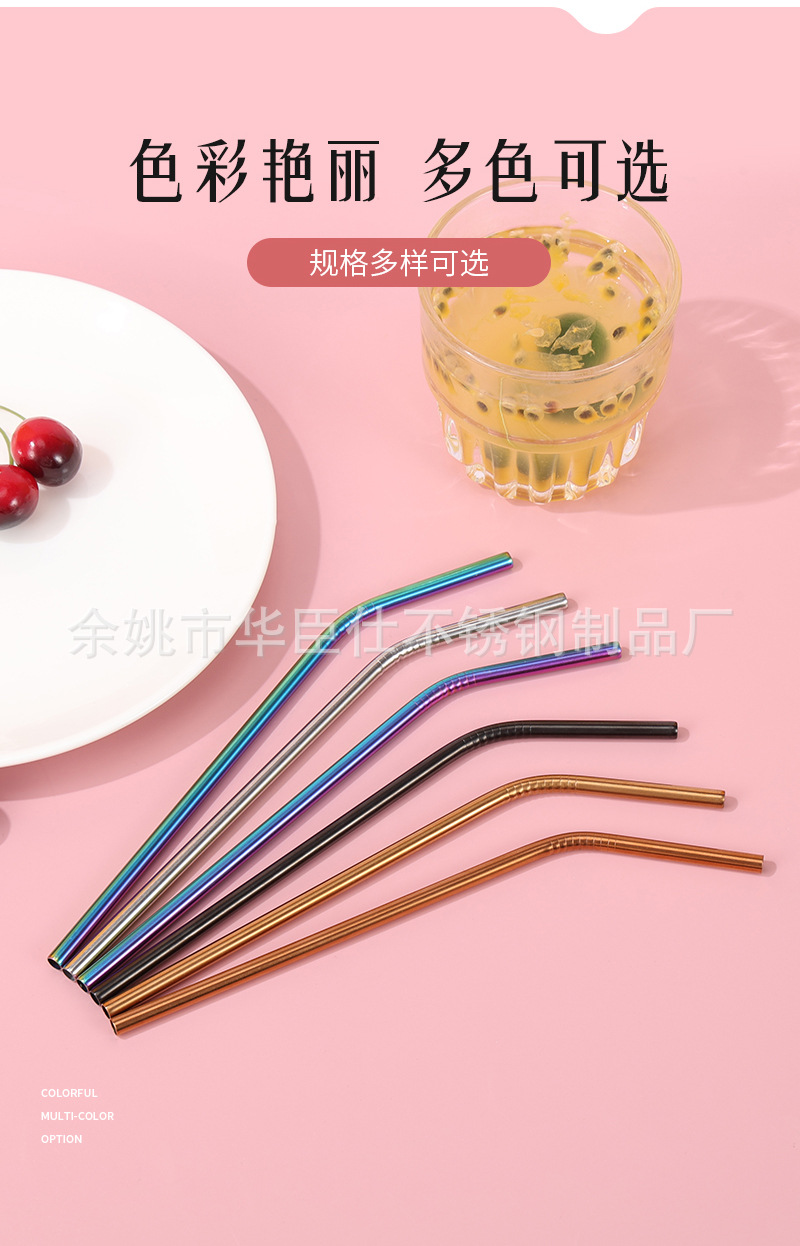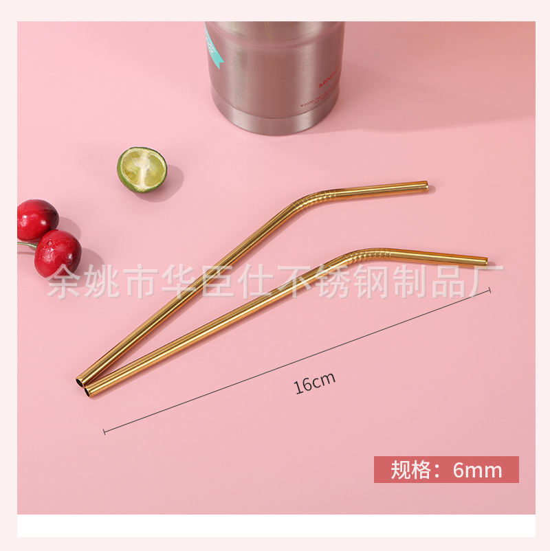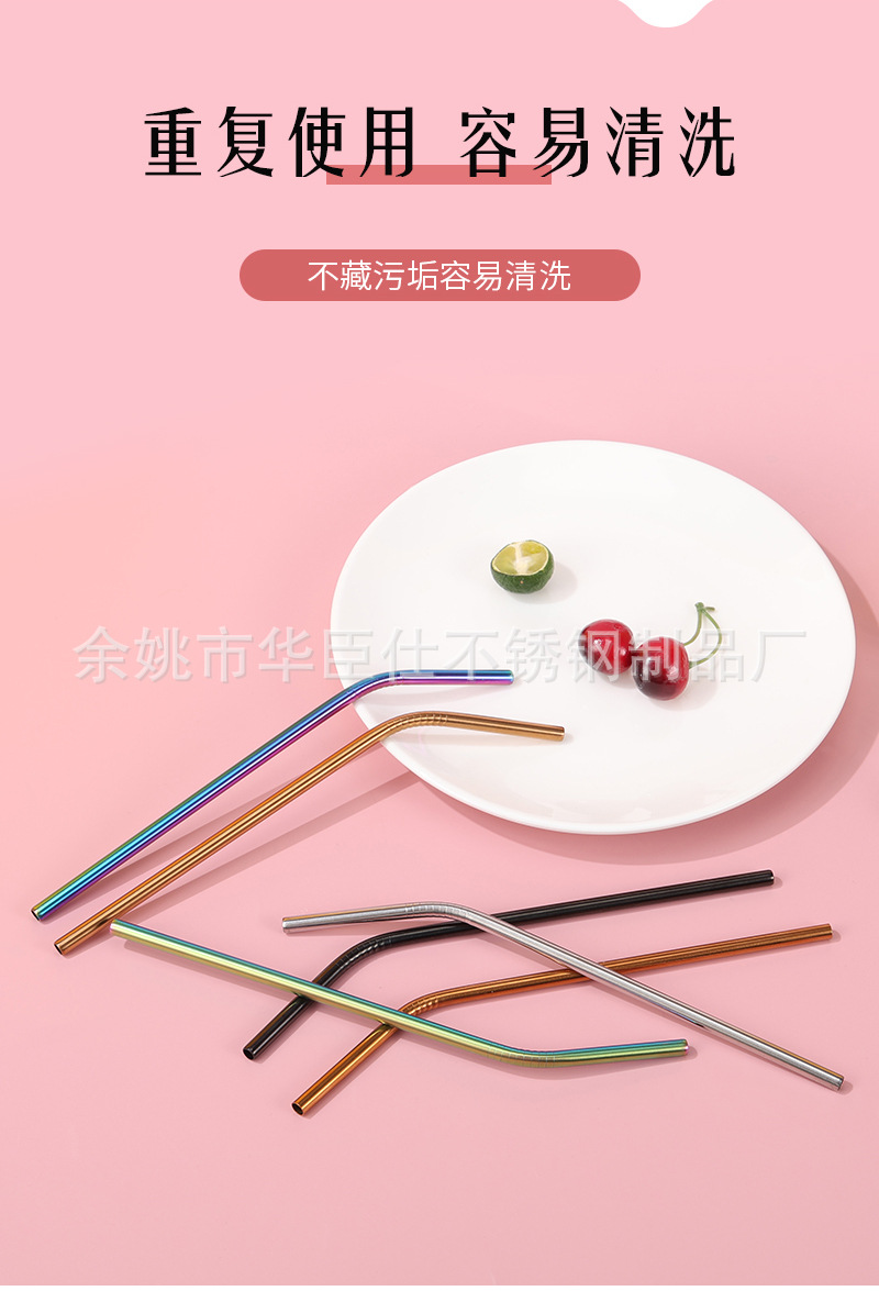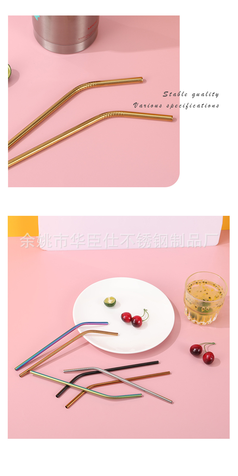 新品304ステンレスストローセットチタンメッキカラー金属ストロークミルクティー冷たいドリンクストレート曲げストロー