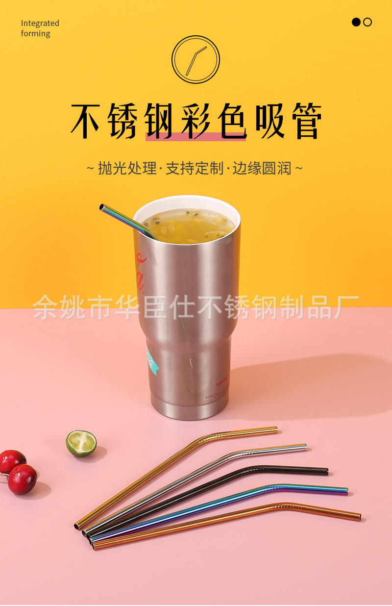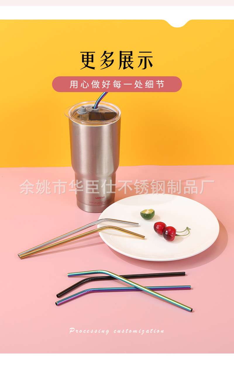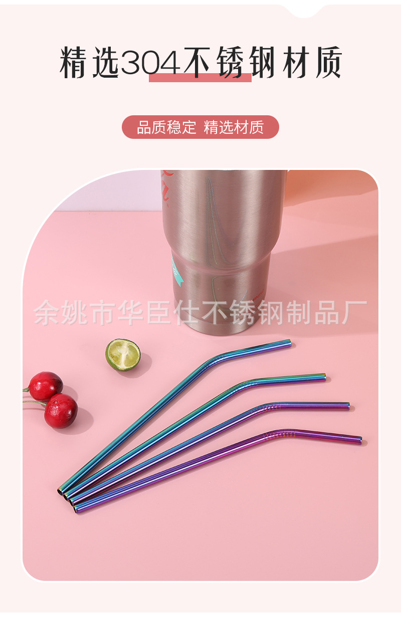 新品304ステンレスストローセットチタンメッキカラー金属ストロークミルクティー冷たいドリンクストレート曲げストロー