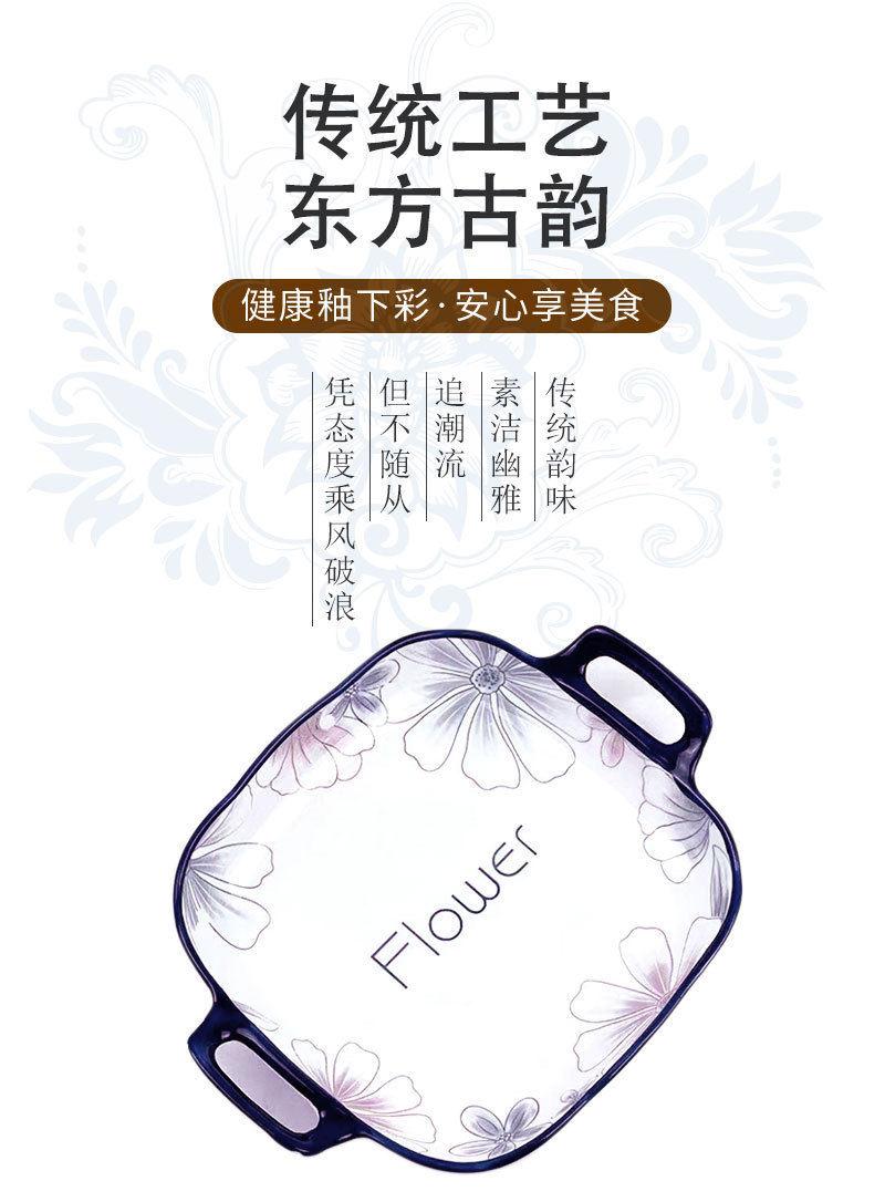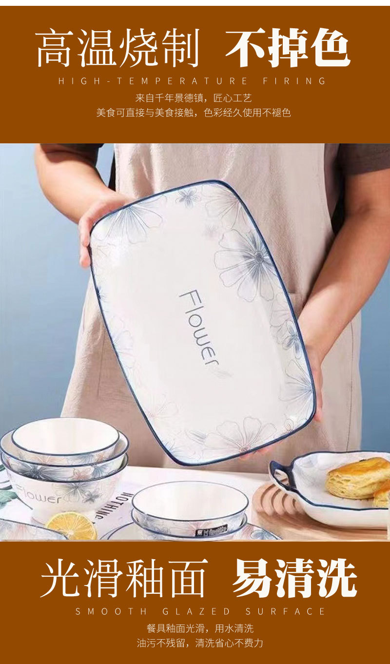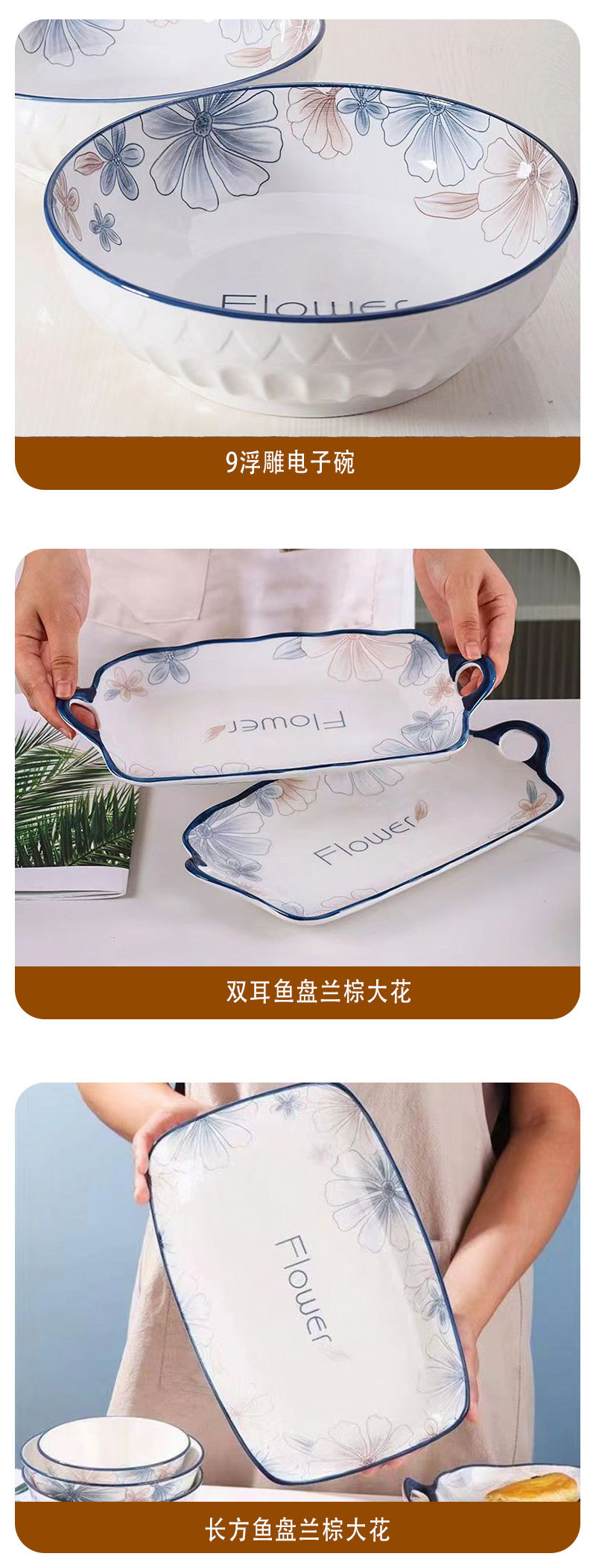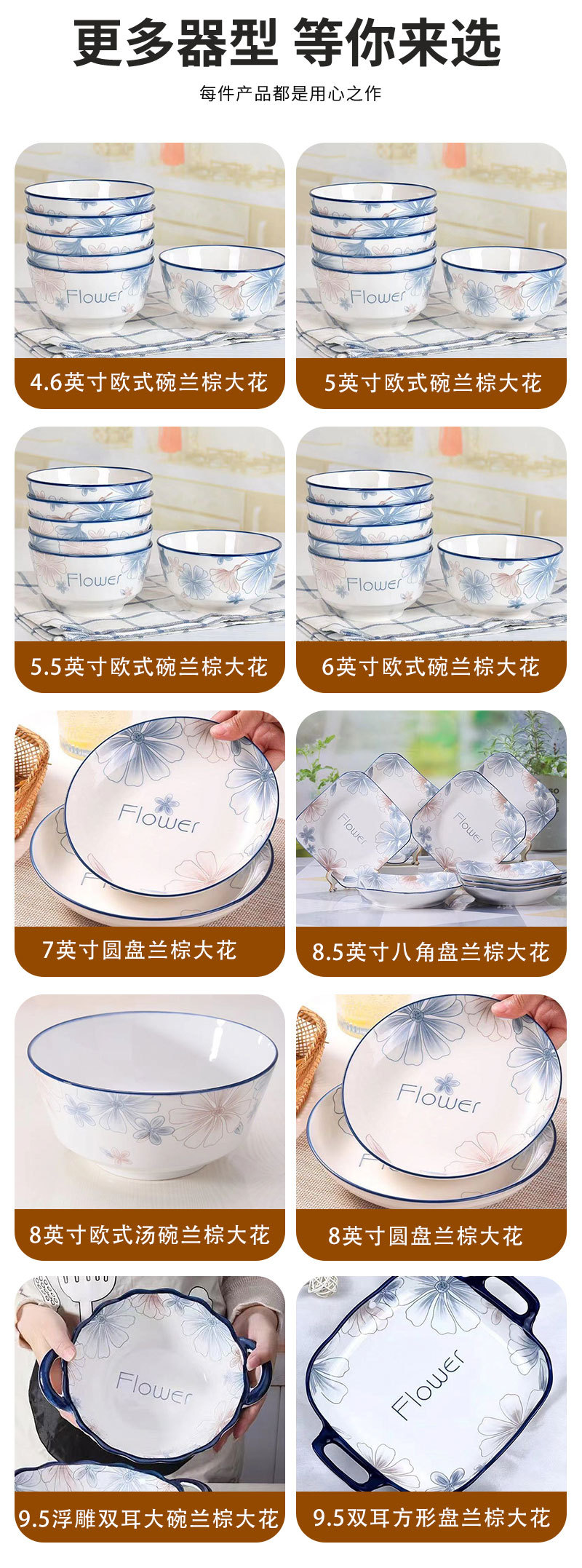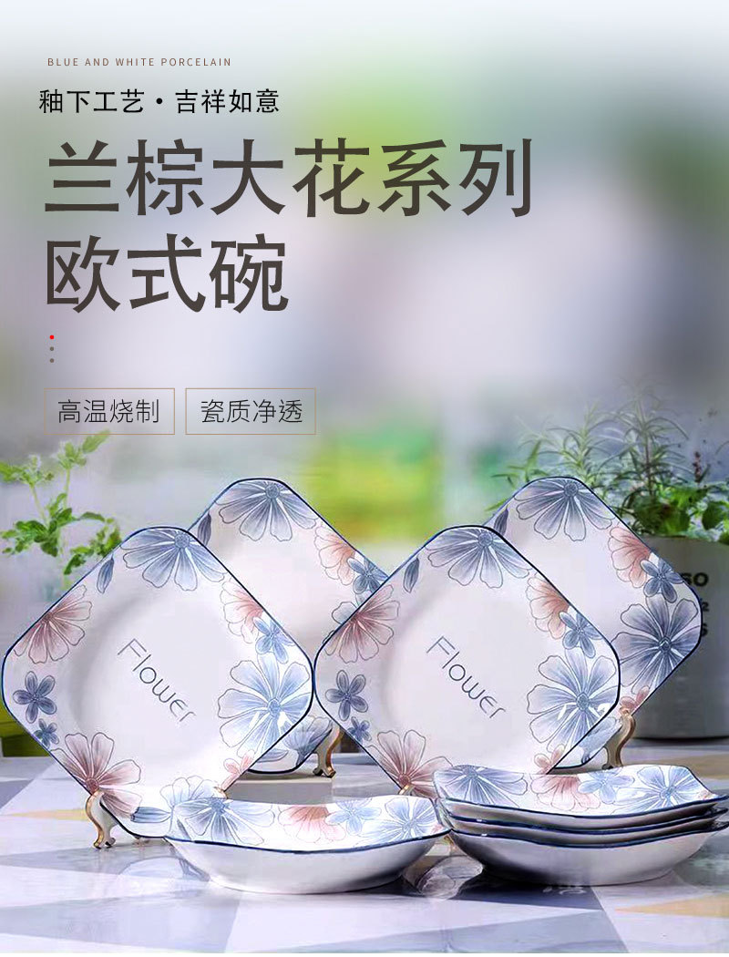 新着小清新蘭ブラウン大花シリーズ家庭用食器皿ご飯碗高顔値スープ碗料理皿魚皿