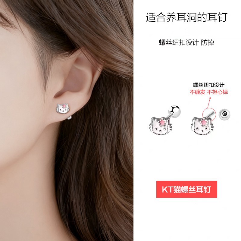 999純銀ハローキティネジ式イヤリング女性用軽奢高級感耳穴ケア子供用イヤリングジュエリー卸売