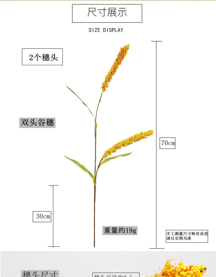 谷穗仿真稻谷穗小米麦穗谷子2头狗尾巴草田园乡村家居摆件猫尾谷