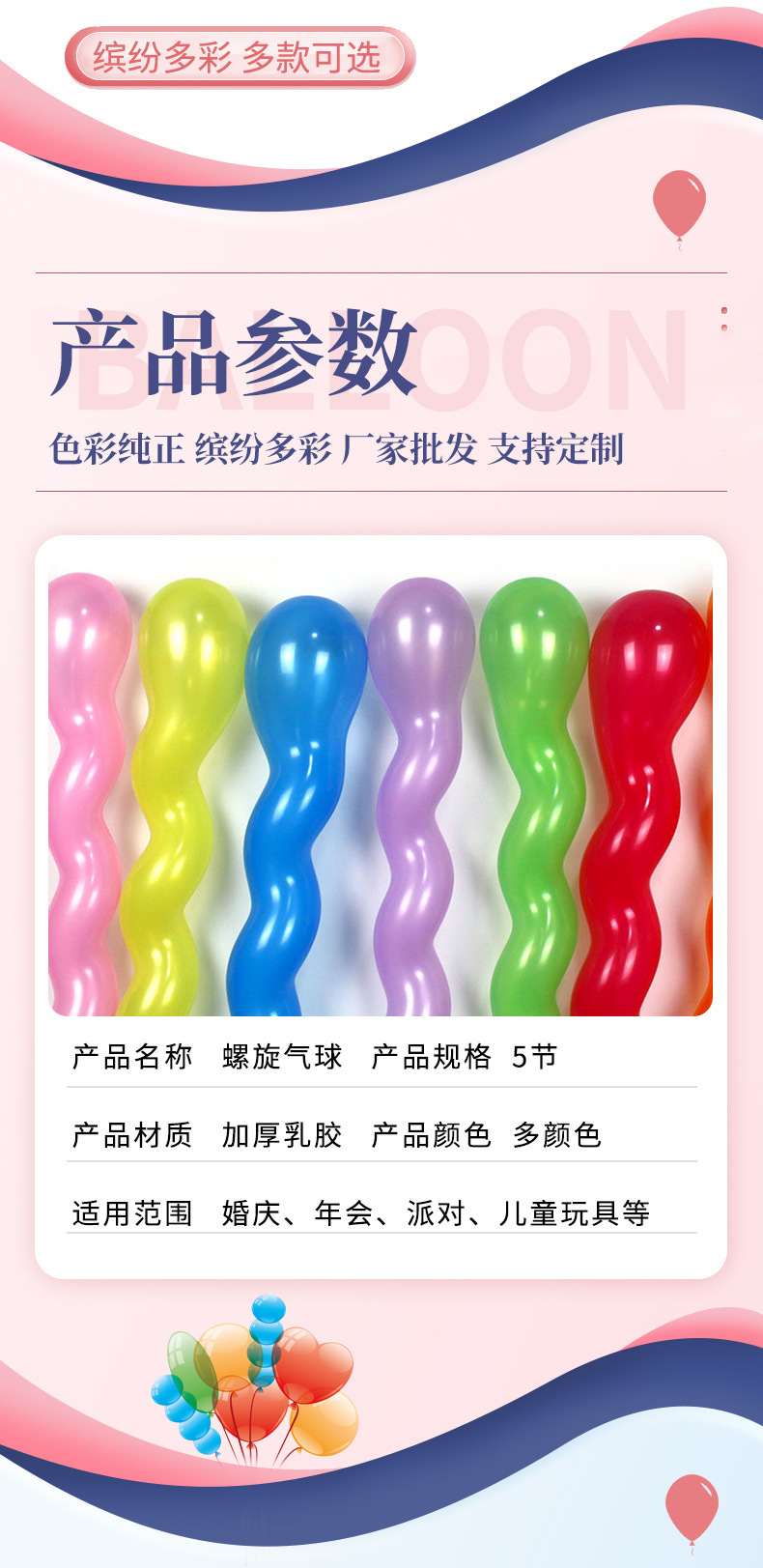 龙球螺旋麻花螺丝气球加厚2.5克异形气球夜店装饰酒吧KTV场景布置