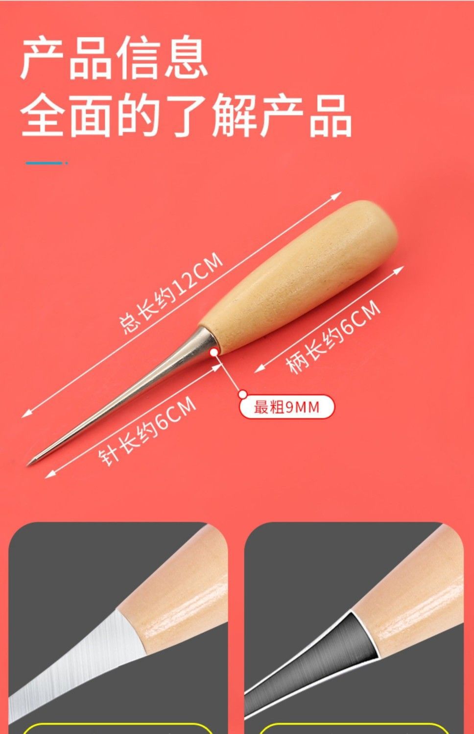 きり打ち穴全鋼太柄中実木大柄千枚通きり針皮革工具目高硬度