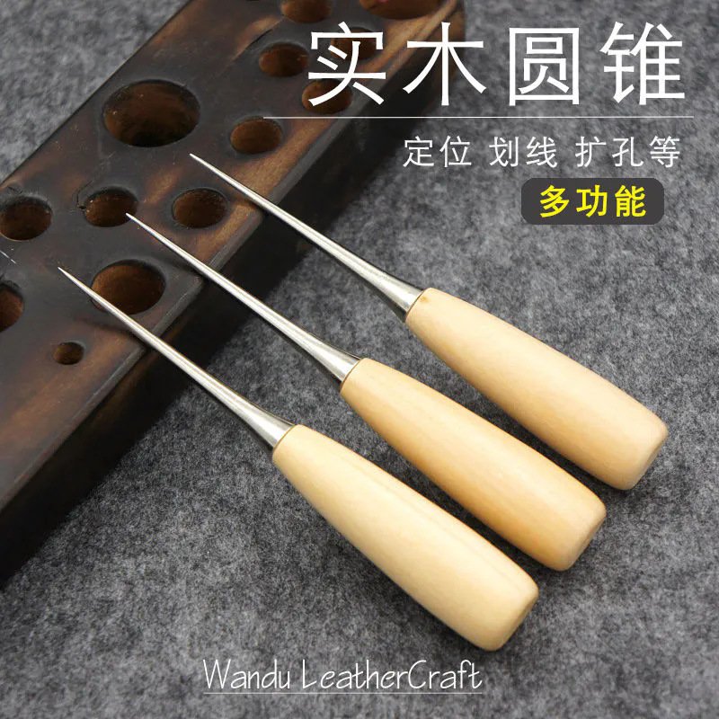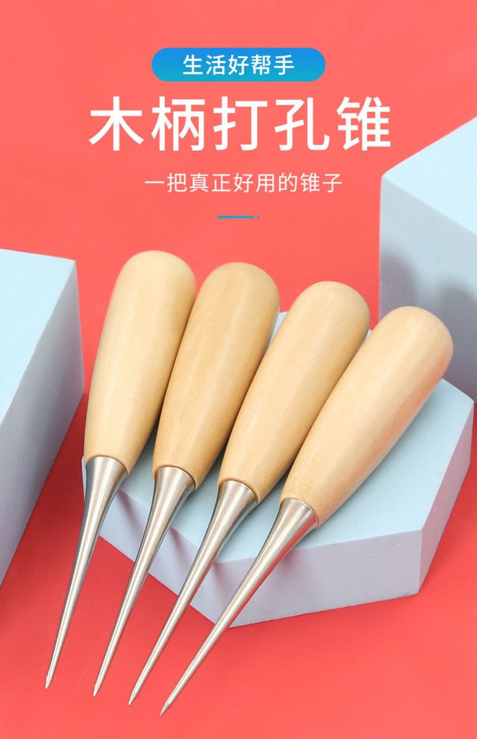 带护套锥子手工皮革工具 圆孔实木柄锥子修鞋钻孔千枚通鞋锥批发