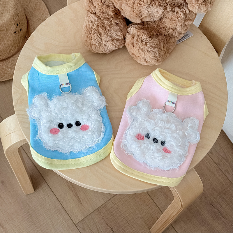 オリジナル秋冬ペット犬猫服ハチミツ熊暖かい綿毛ペット馬甲とベルベットは馬甲を牽引することができる