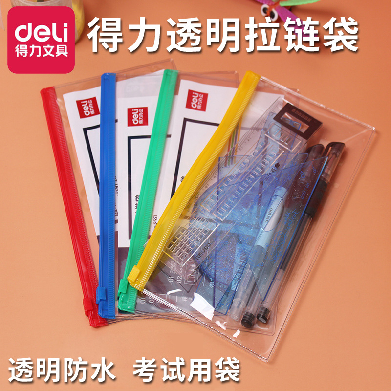 デリ 5521 透明防水小さなジッパーバッグ試験サイドバッグオーガナイザーバッグペン文具収納袋卸売