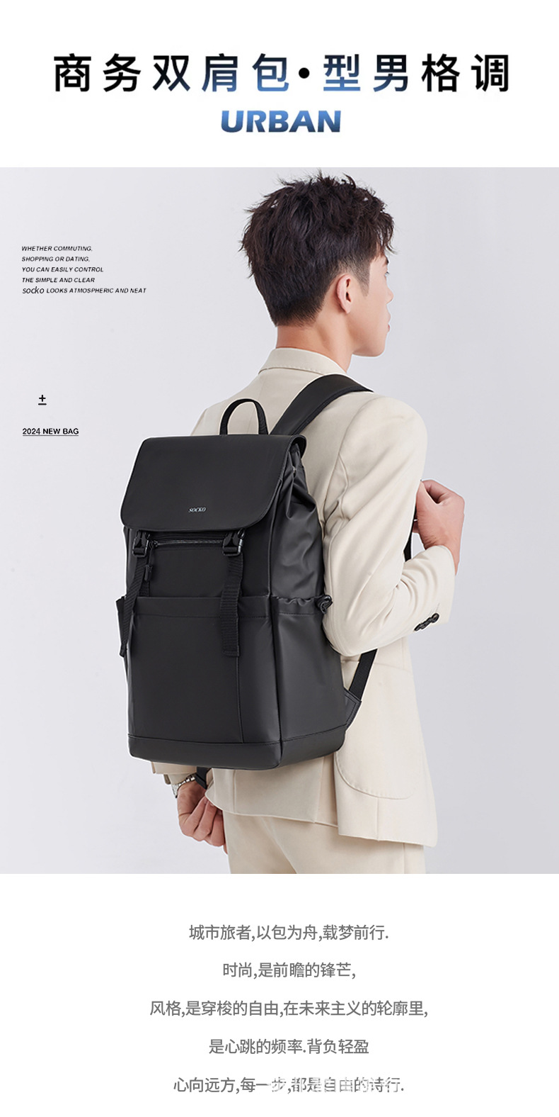 新款跨境大容量旅行背包百搭书包男女大学生出差高级感电脑包双肩