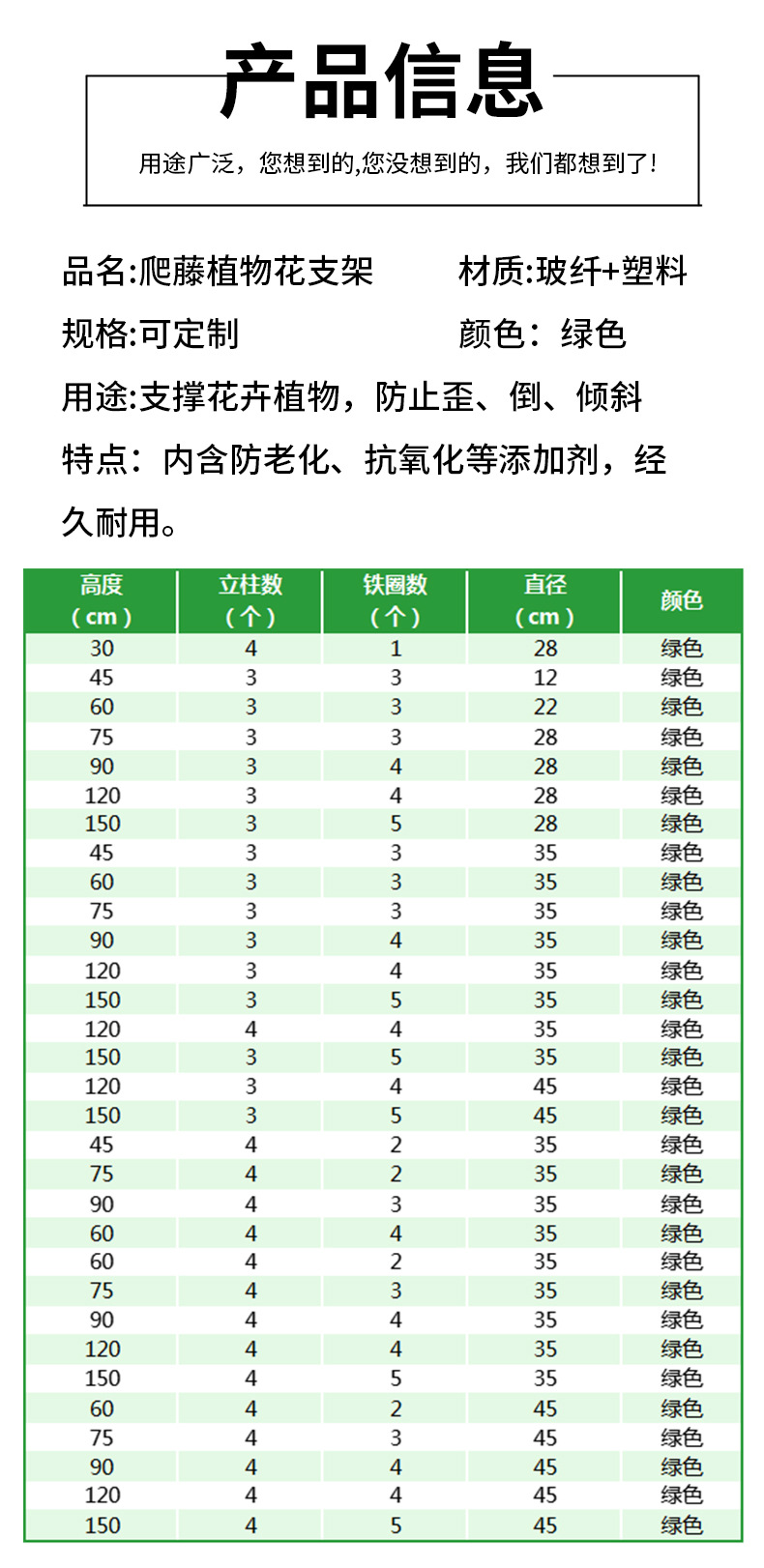Ø6.3mm、高さ30cm、ロッド4本、サークル1個、直径28cm,Ø6.3mm、高さ45cm、ポール3本、サークル3本、直径18cm,高さ ф6.3mm、ポール3本、サークル3本、直径22cm,Ø6.3mm、高さ75cm、ポール3本、サークル3本、直径28cm,高さ ф6.3mm、ポール3本、サークル4本、直径28cm,高さ ф6.3mm、ポール3本、サークル4本、直径28cm,高さ ф6.3mm、ポール3本、サークル5本、直径28cm,Ø6.3mm、高さ45cm、ポール3本、サークル3本、直径35cm,高さ ф6.3mm、ポール3本、サークル3本、直径35cm,Ø6.3mm、高さ75cm、ポール3本、サークル3本、直径35cm,高さ ф6.3mm、ポール3本、サークル4本、直径35cm,高さ ф6.3mm、ポール3本、サークル4本、直径35cm,高さ ф6.3mm、ポール3本、サークル5本、直径35cm,高さ ф6.3mm、ポール4本、サークル4本、直径35cm,Ø6.3mm、高さ150cm、ポール4本、サークル5本、直径35cm,高さ ф6.3mm、ポール3本、サークル4本、直径45cm,高さ ф6.3mm、ポール3本、サークル5本、直径45cm,Ø高さ6.3mm、高さ45cm、ポール4本、サークル2個、直径35cm,Ø6.3mm、高さ60cm、ポール4本、サークル2個、直径35cm,Ø高さ6.3mm、高さ75cm、ポール4本、サークル3本、直径35cm,Ø6.3mm、高さ90cm、ポール4本、サークル4本、直径35cm,高さ ф7.8mm 60cm*4 ロッド*2 サークル直径 35cm,高さ ф7.8mm 75cm*4 ロッド*3 サークル直径 35cm,高さ ф7.8mm 90cm*4 ロッド*4 サークル直径 35cm,高さ ф7.8mm 120cm*4 ロッド*4 サークル直径 35cm,高さ ф7.8mm 150cm*4 ロッド*5 サークル直径 35cm,高さ ф7.8mm 60cm*4 ロッド*2 サークル直径 45cm,高さ ф7.8mm 75cm*4 ロッド*3 サークル直径 45cm,高さ ф7.8mm 90cm*4 ロッド*4 サークル直径 45cm,高さ ф7.8mm 120cm*4 ロッド*4 サークル直径 45cm,高さ ф7.8mm 150cm*4 ロッド*5 サークル直径 45cm