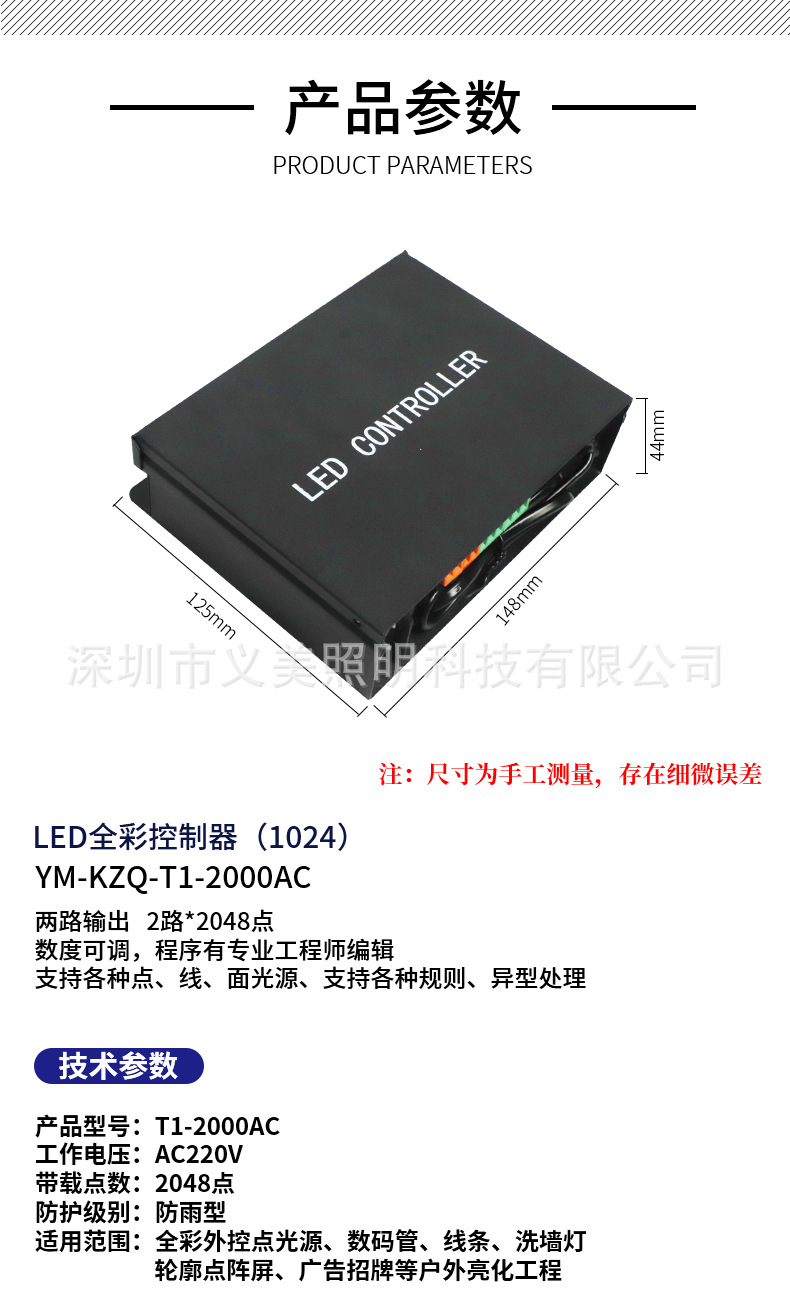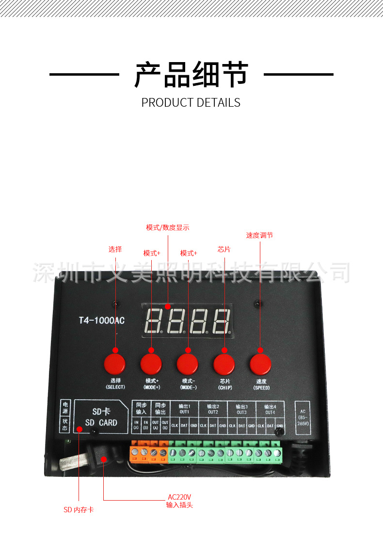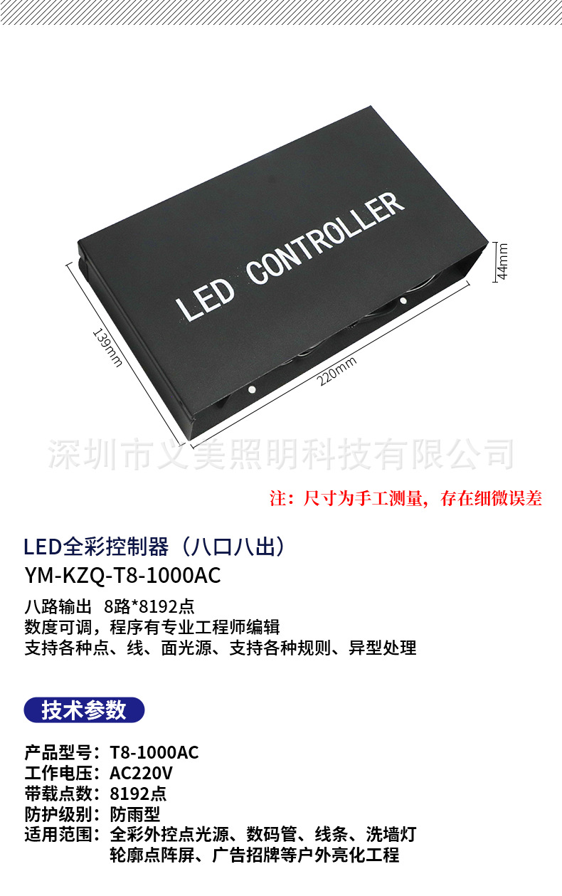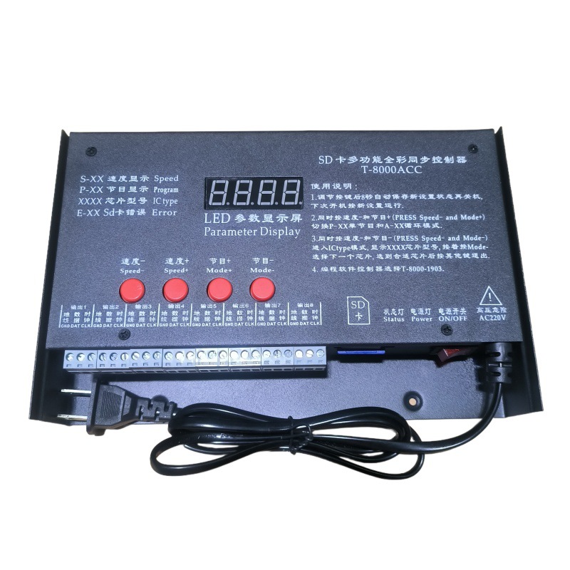 T8-1000AC超级发光字LED全彩控制器七彩蓝牙遥控GPS同步SD卡灯带