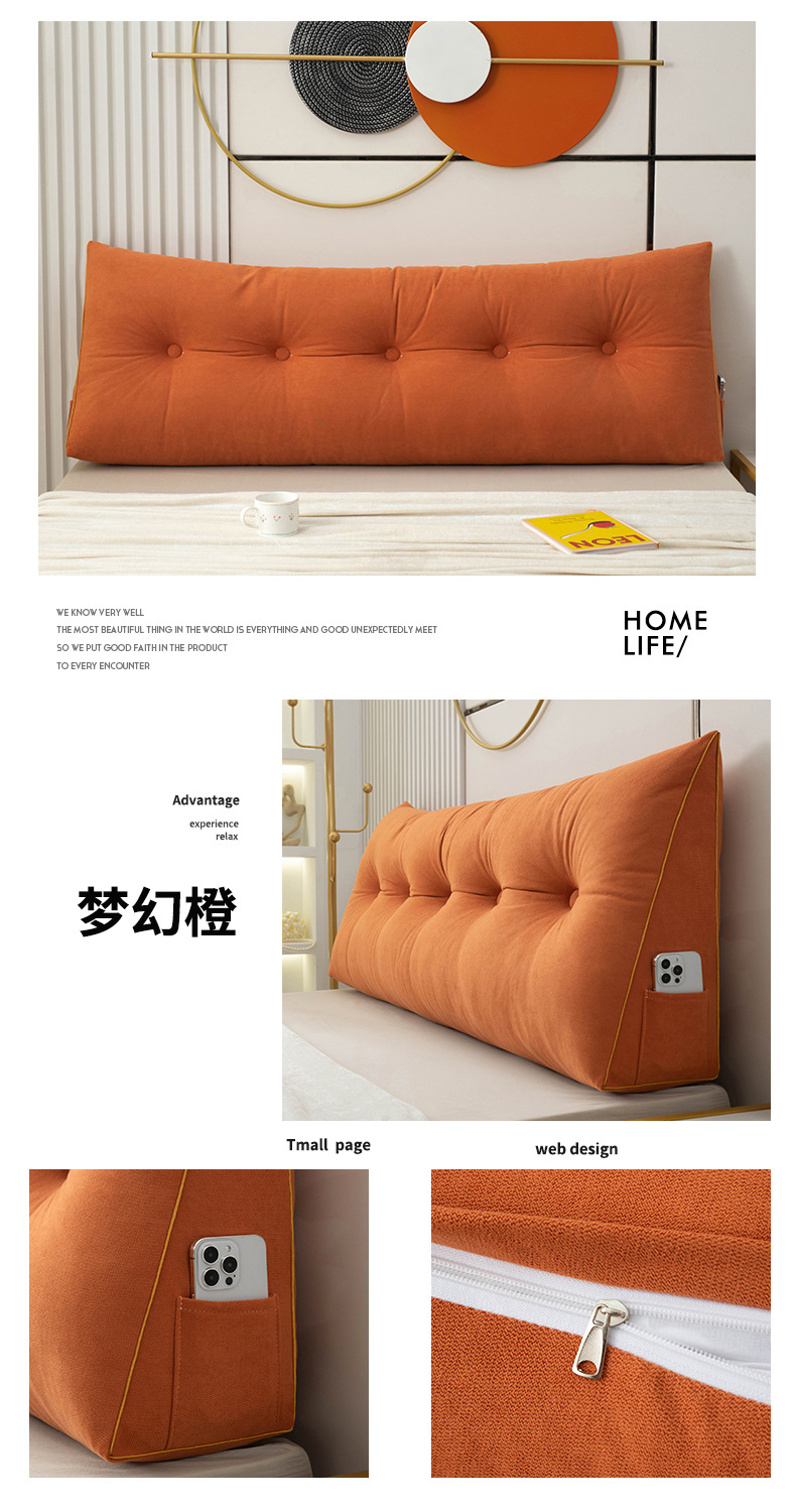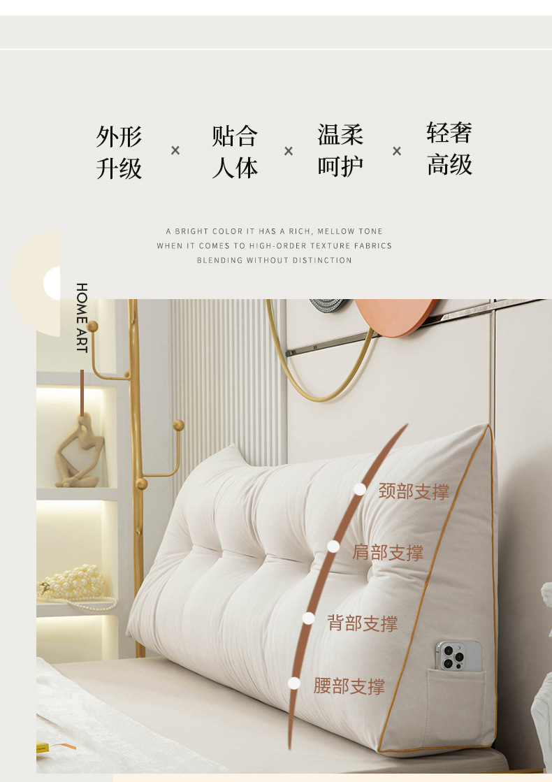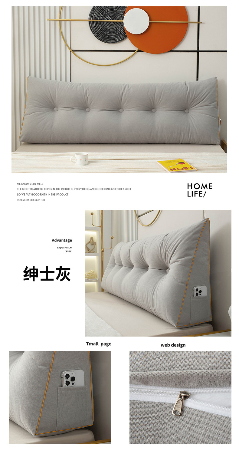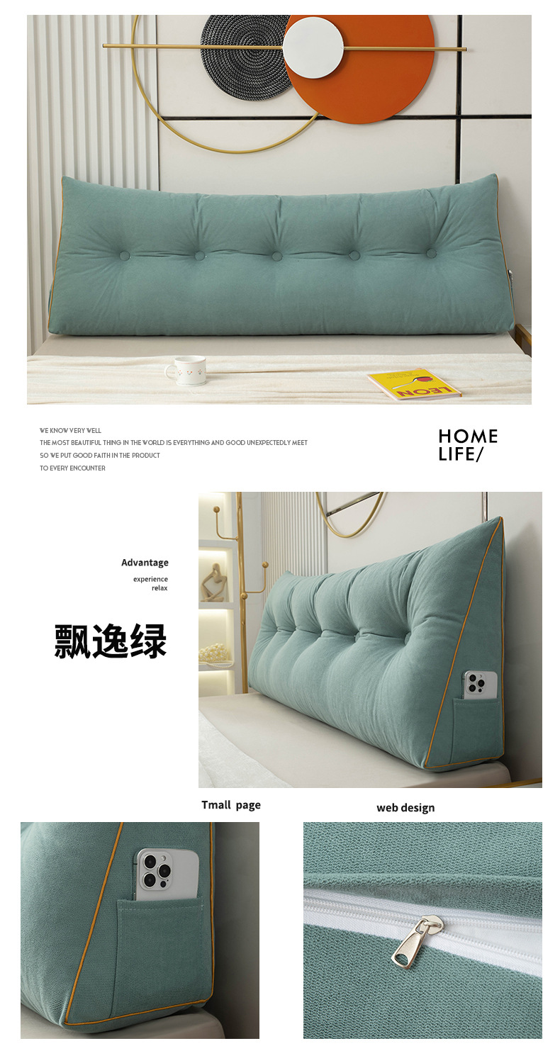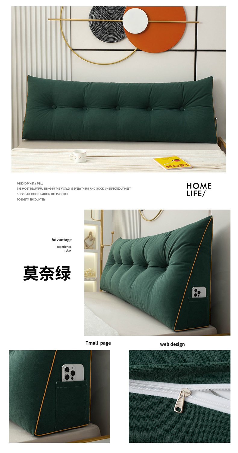 北欧風のベッドの上のクッションの寝室は枕を背負って柔らかい包みの客間の三角のソファーの大きい背もたれのベッドの上で腰の枕を保護して分解して洗うことができます。