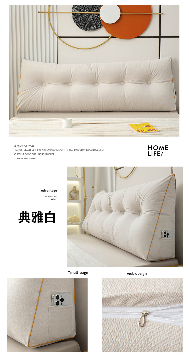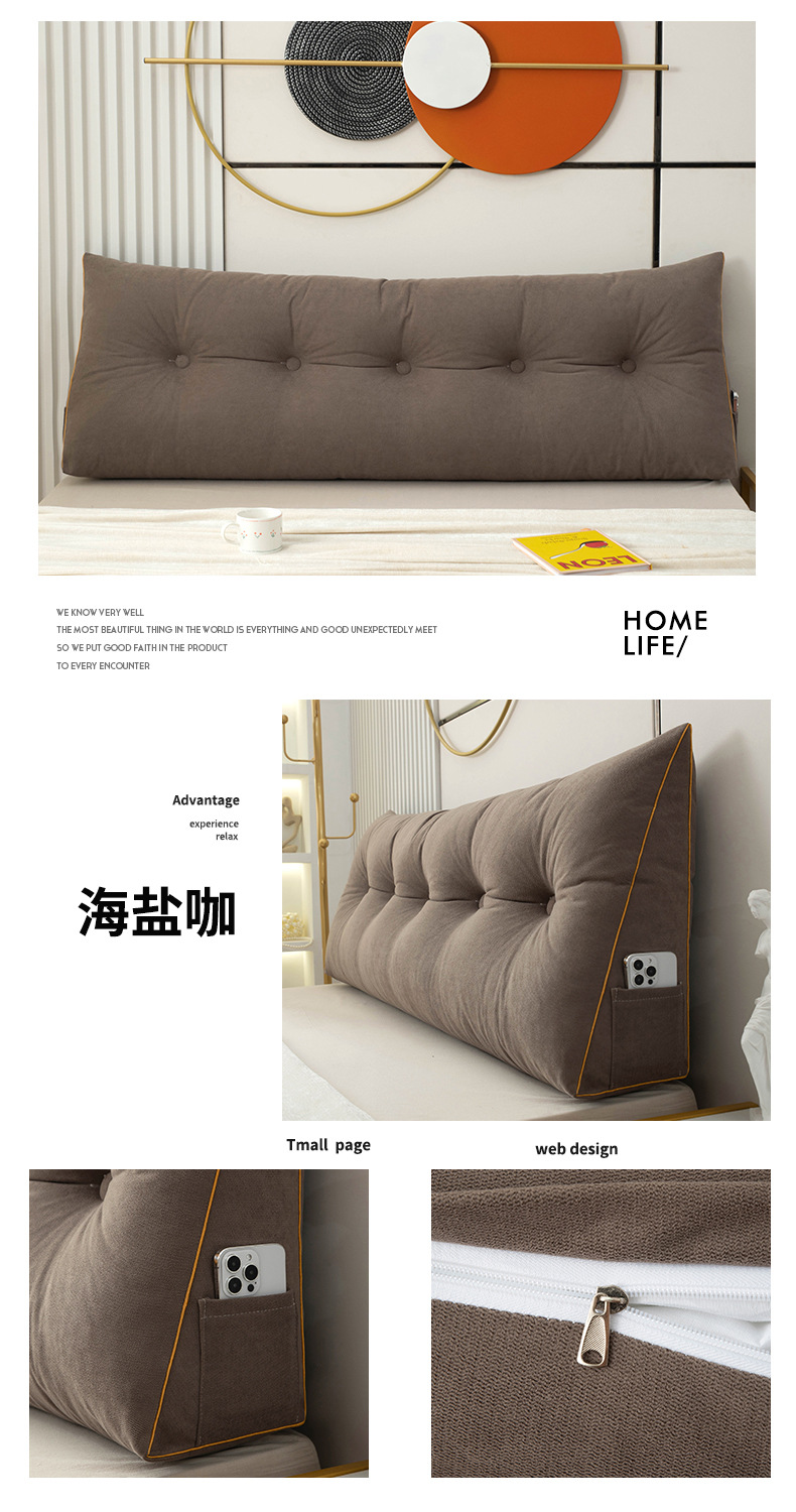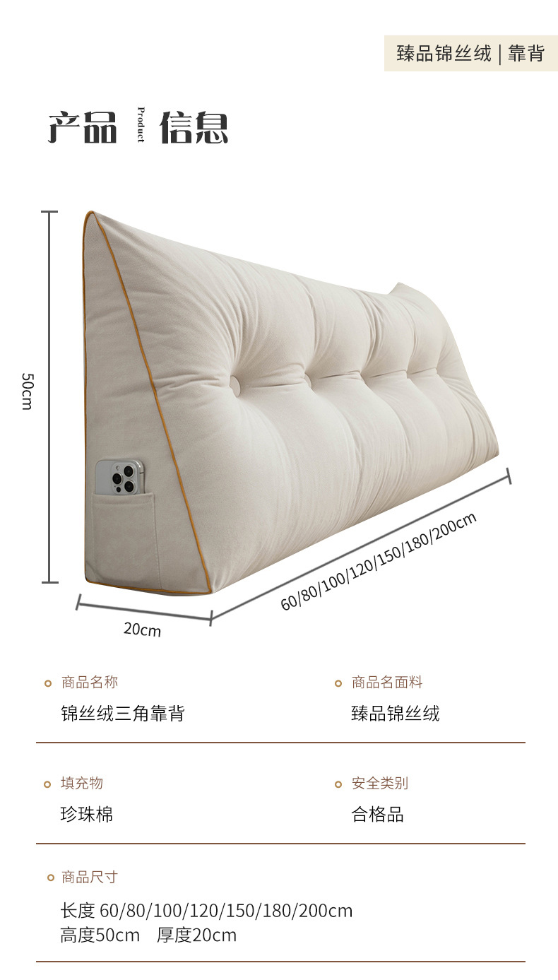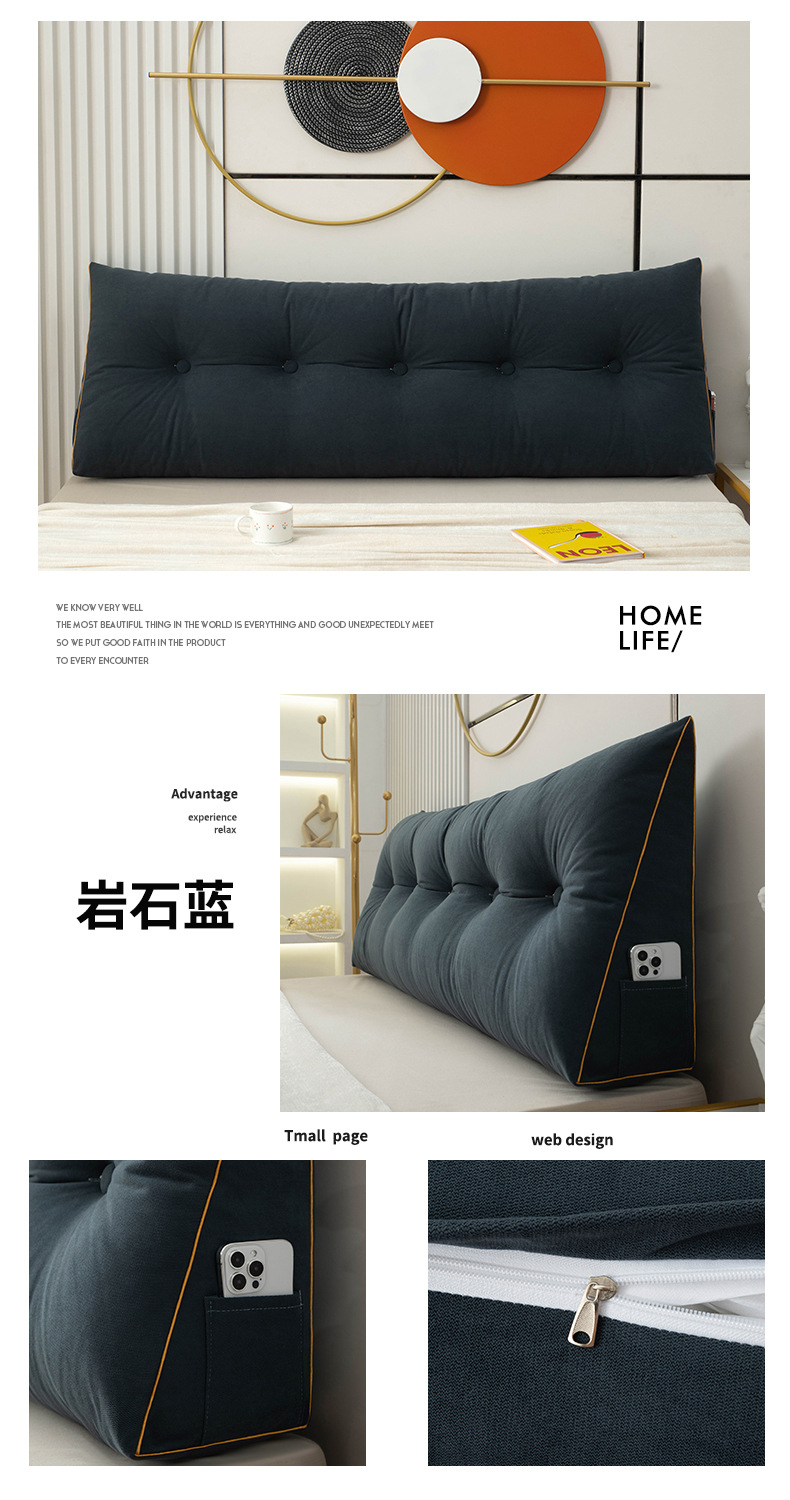 北欧風のベッドの上のクッションの寝室は枕を背負って柔らかい包みの客間の三角のソファーの大きい背もたれのベッドの上で腰の枕を保護して分解して洗うことができます。