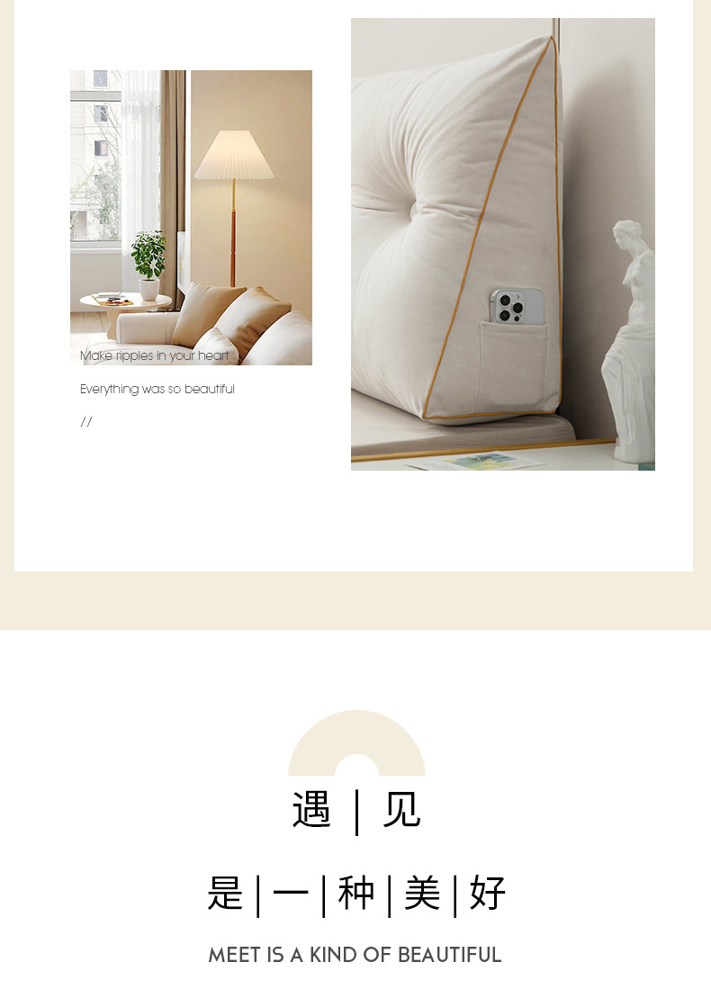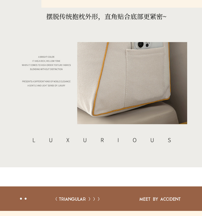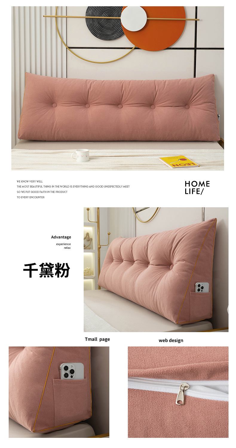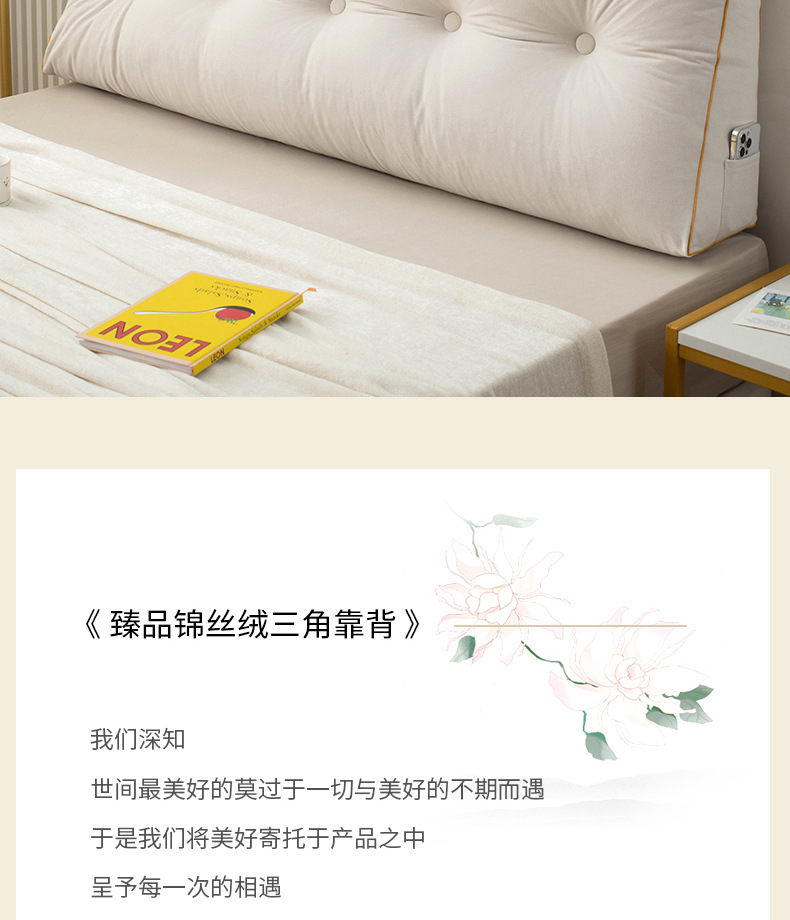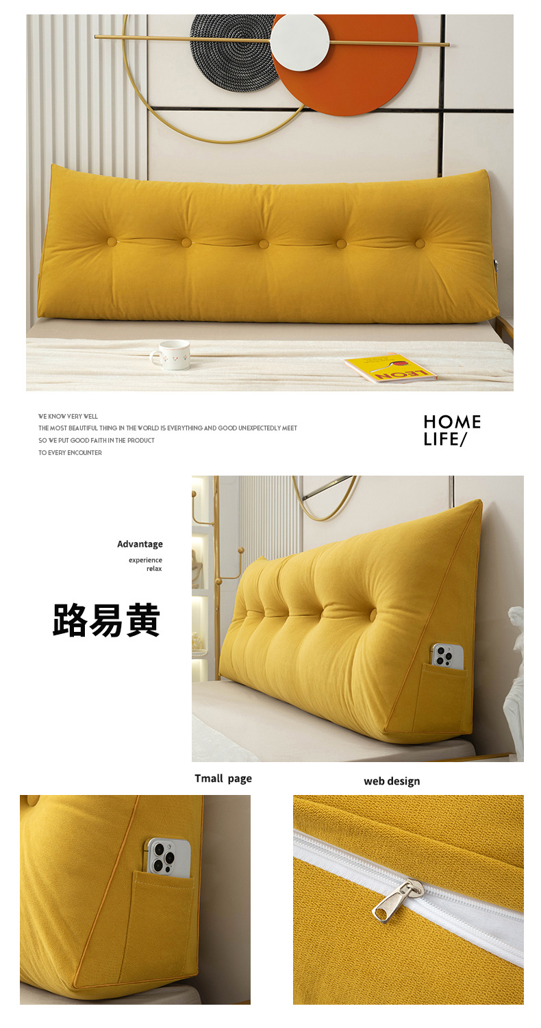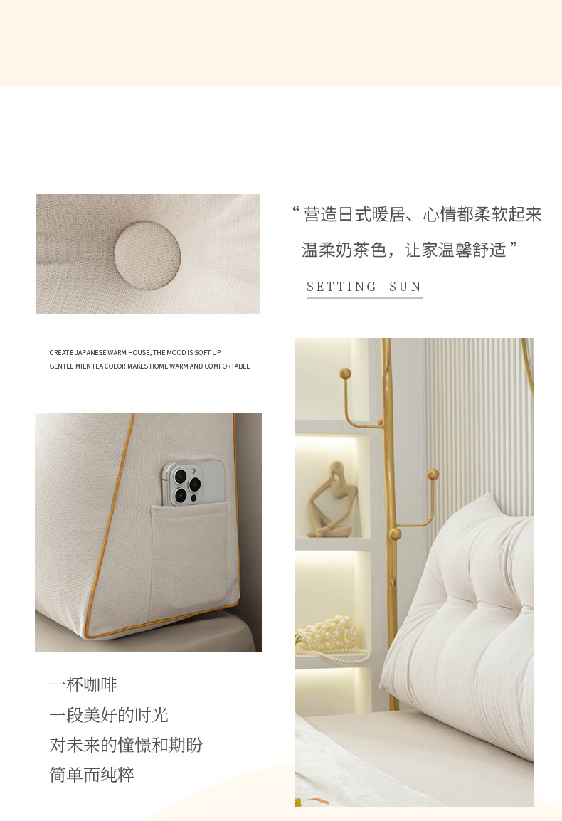 北欧風のベッドの上のクッションの寝室は枕を背負って柔らかい包みの客間の三角のソファーの大きい背もたれのベッドの上で腰の枕を保護して分解して洗うことができます。