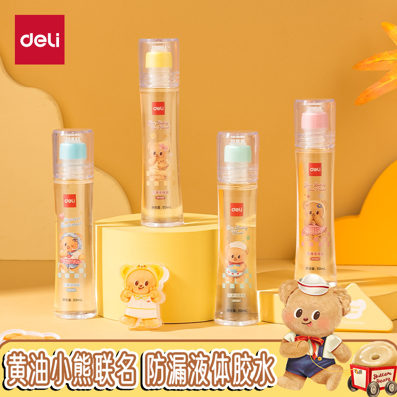 得力X黄油小熊联名液体胶水高粘度防漏液体胶学生手工粘贴牢固