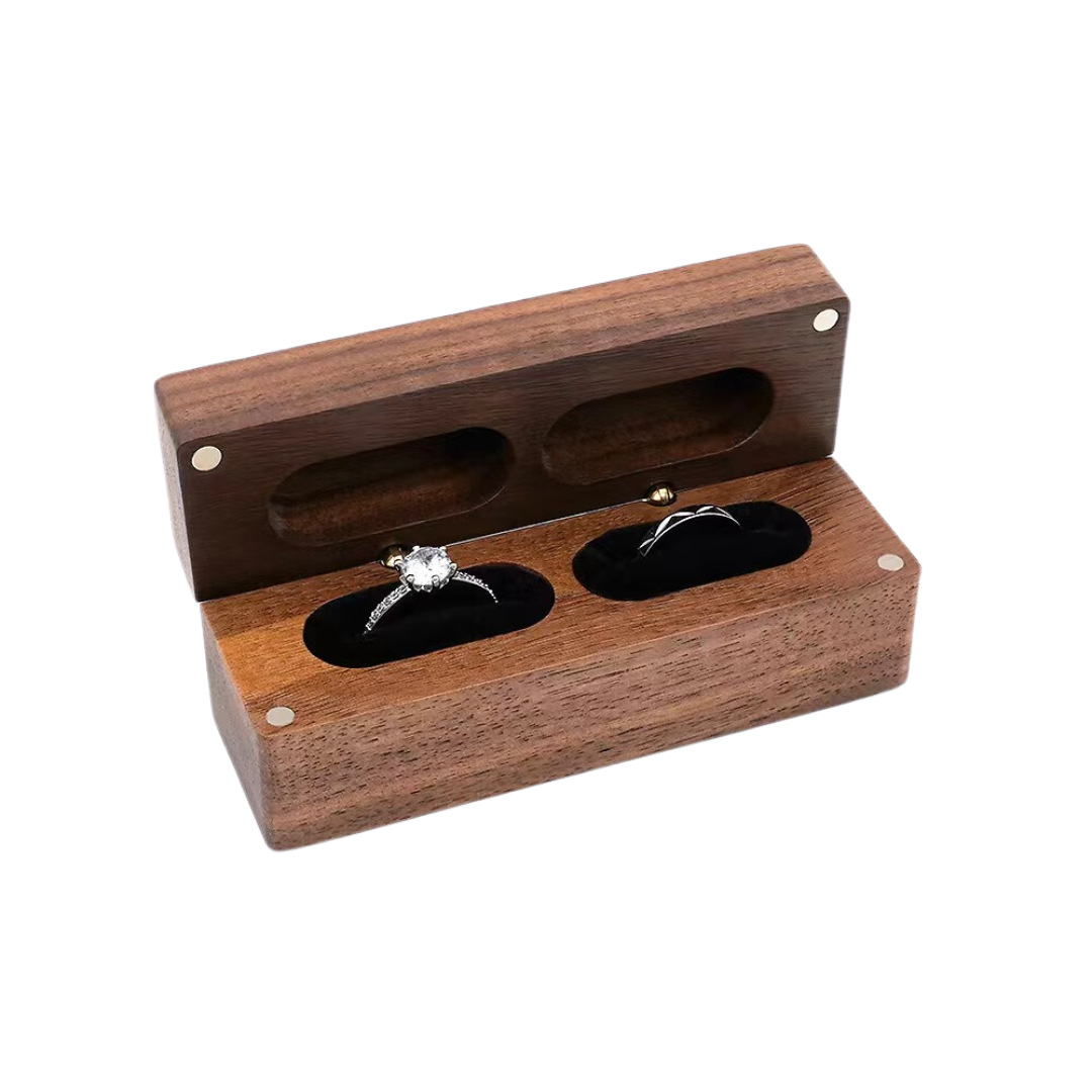 新商品の長条対戒箱四磁気吸指環アクセサリー箱ジュエリー黒胡桃包装箱アクセサリー包装プロポーズ女