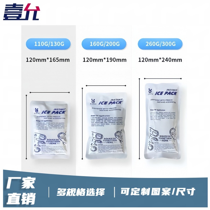 冰袋仅供外用,如内容物接触眼睛或皮肤,应用清水彻底清洗。如不慎误食内容物,应饮下大量清水及尽量吐出,必要时应联系医生。