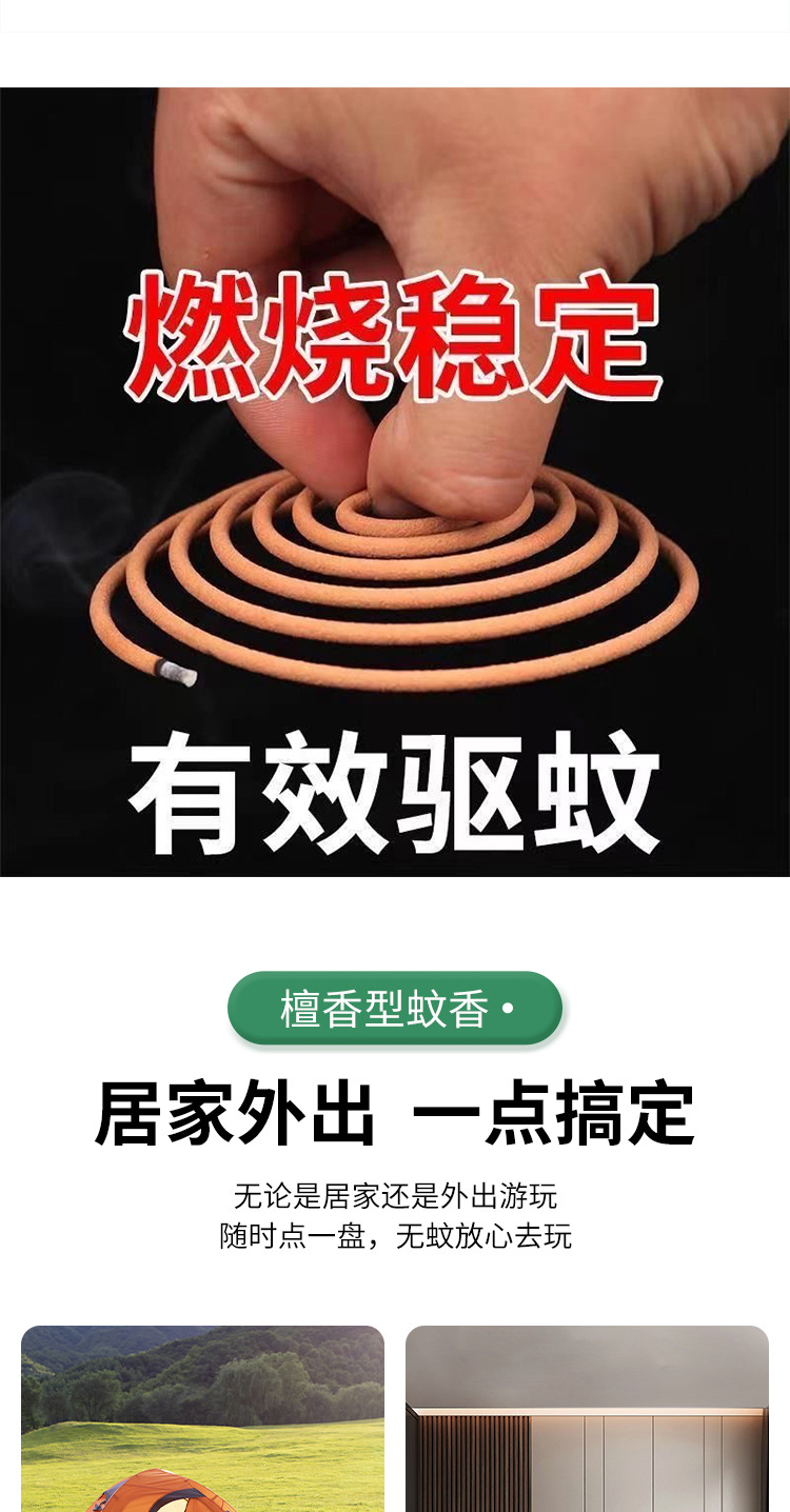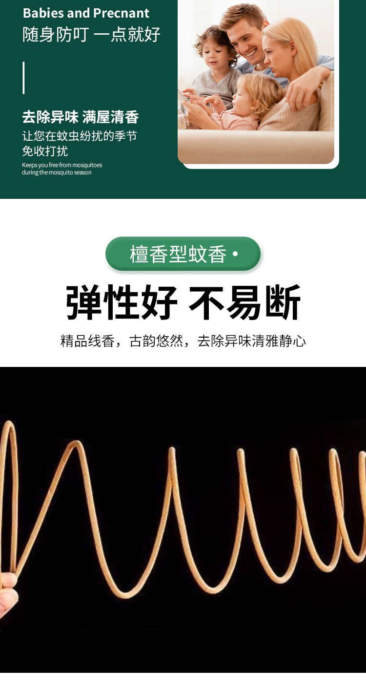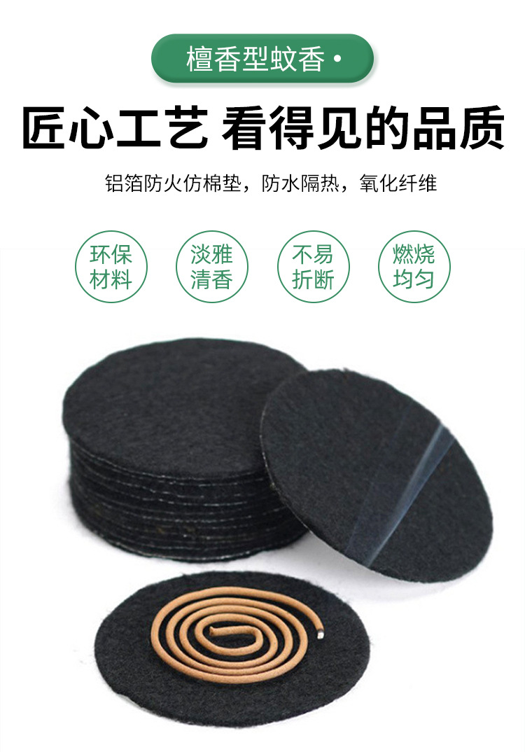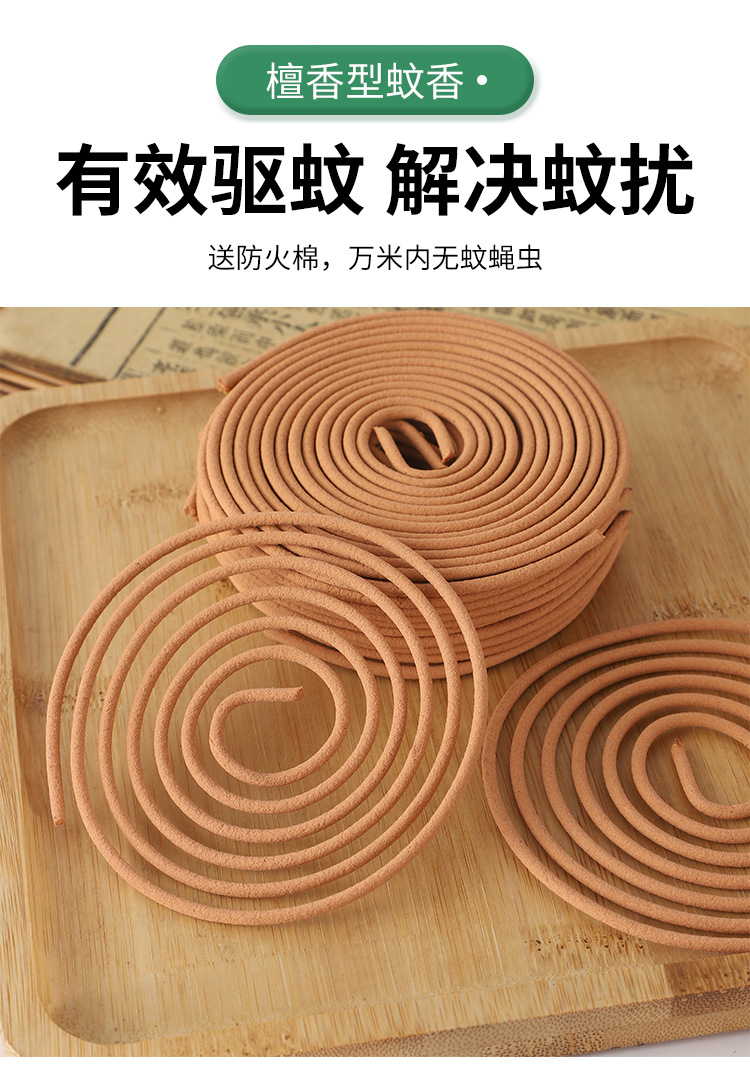 白檀型蚊取り線香、蚊やハエを寄せ付けない、家庭用蚊取り線香、白檀、屋外用線香、効果的な蚊よけ、蚊やハエを殺すための専用線香