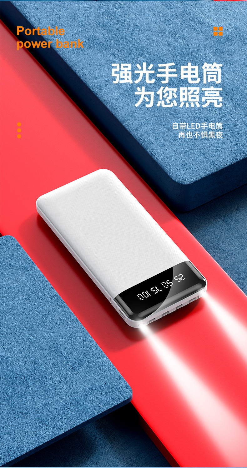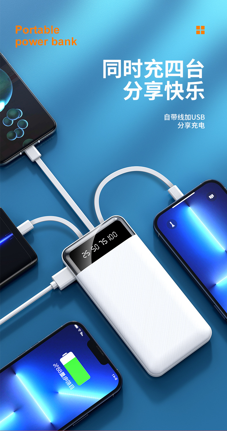 3c认证大容量自带4线充电宝20000毫安快充数显超薄礼品移动电源