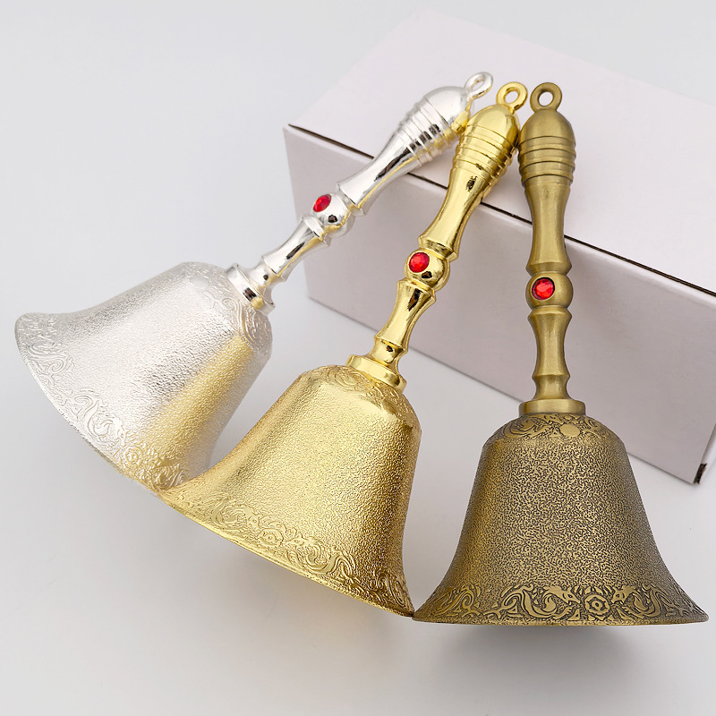 TEMU热卖红宝石手摇铃铛大号响亮圣诞铃超响铃复古铜铃铛金属挂件