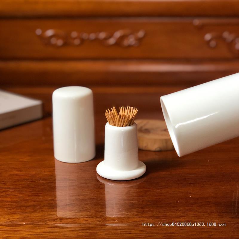 シンプルな純白陶磁器のつまようじ筒家庭用つまようじ商用金辺つまようじ箱つまようじ缶注文直売