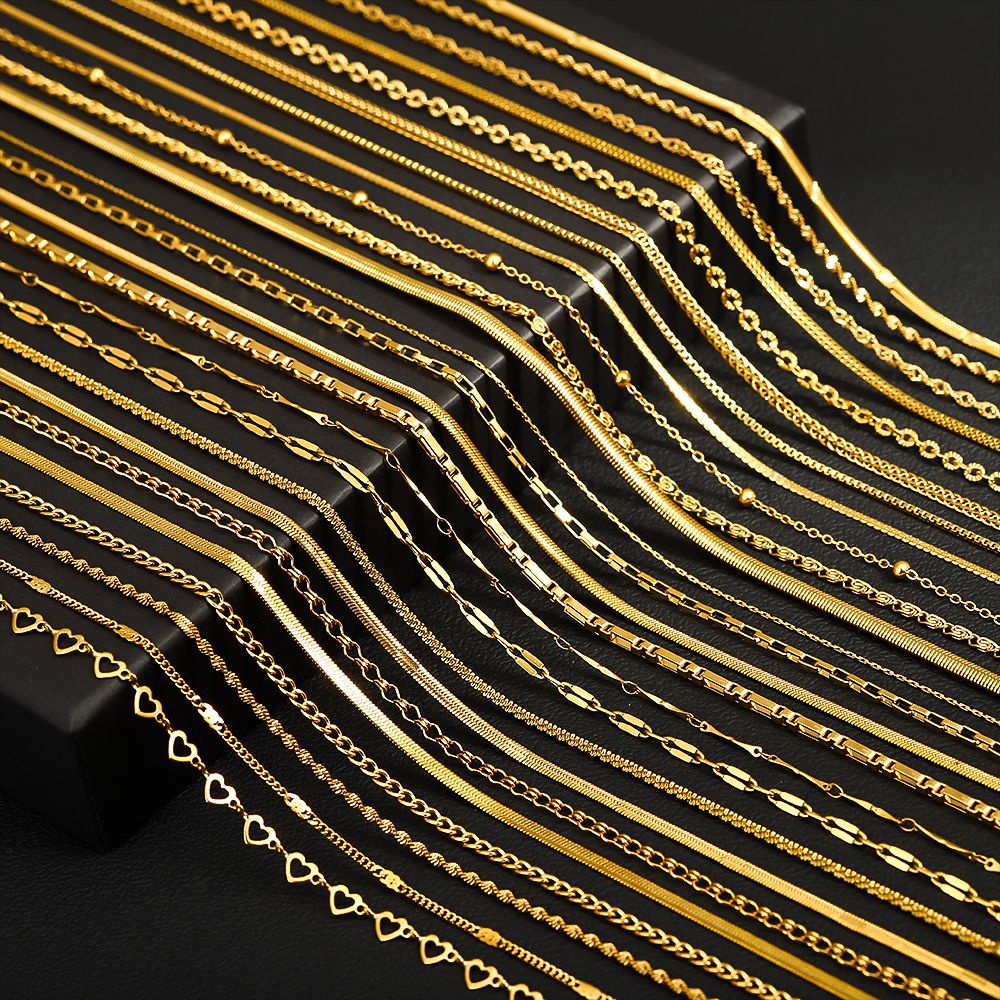 不锈钢多款项链金色DIY时尚锁骨链 真空保色电镀18k金女 钛钢项链