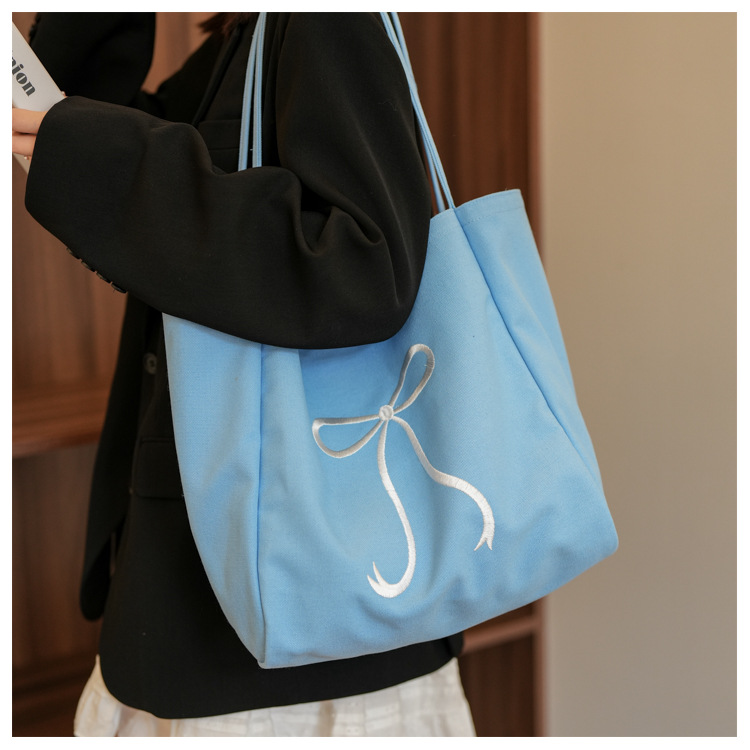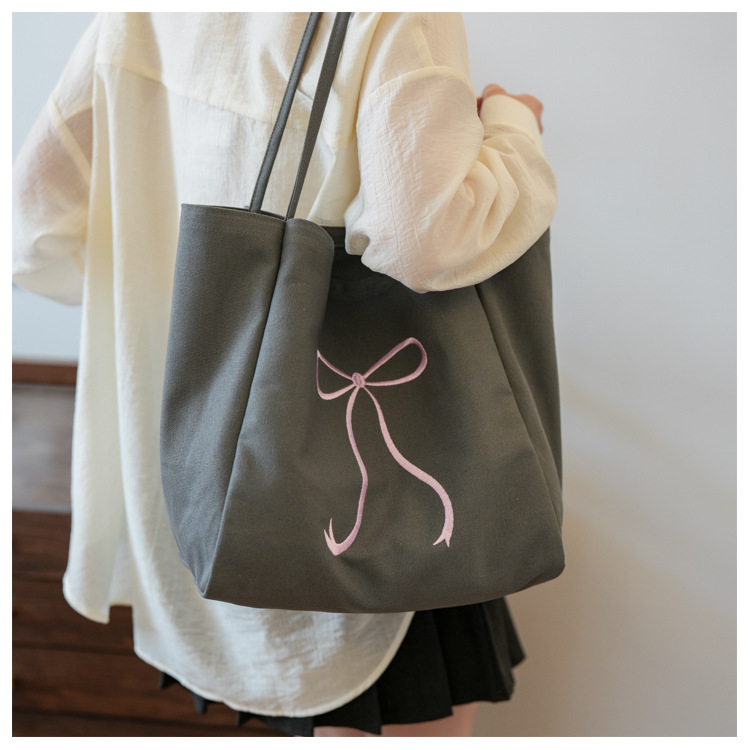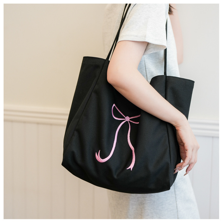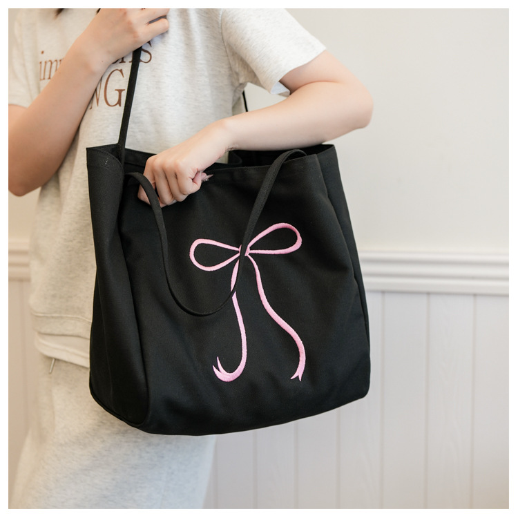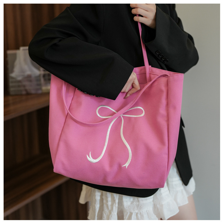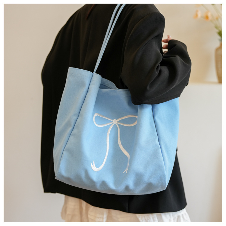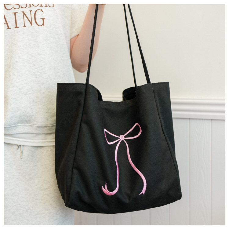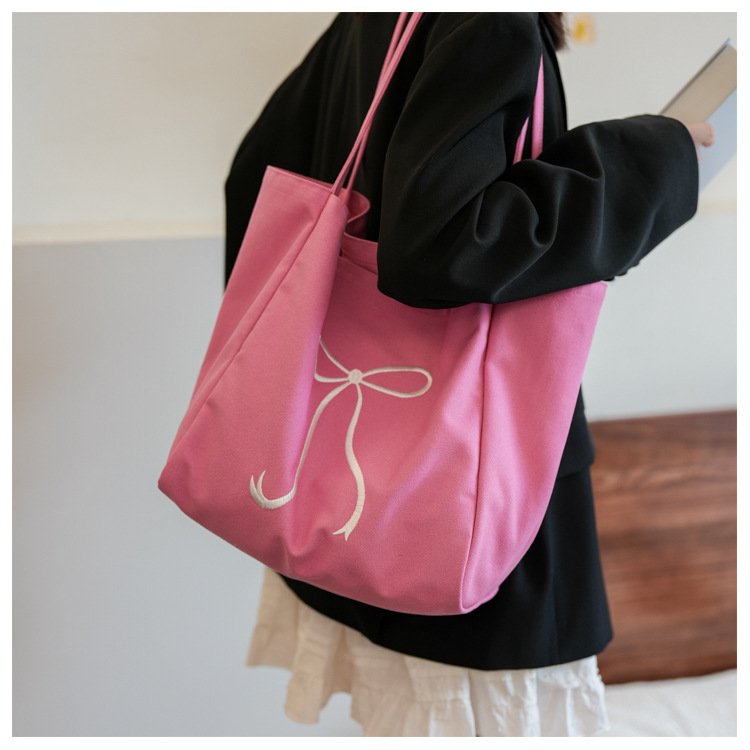大容量蝶結び刺繍ズックトートバッグ女性少女ハートかわいいワンショルダーバッグ通勤通勤手提げ