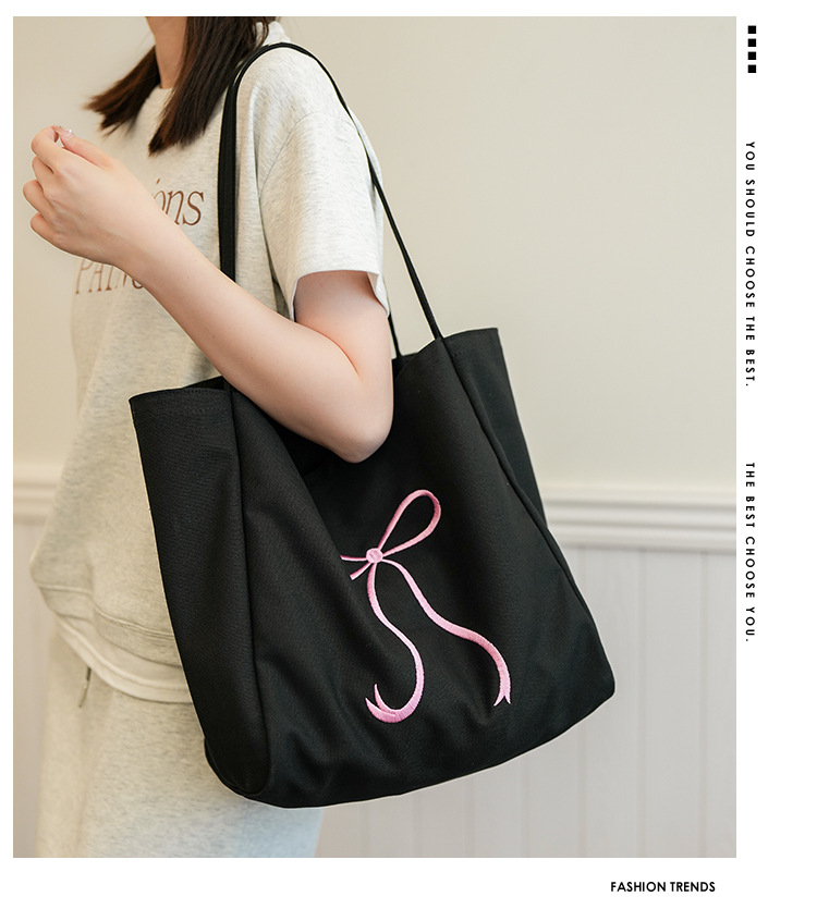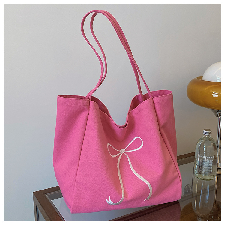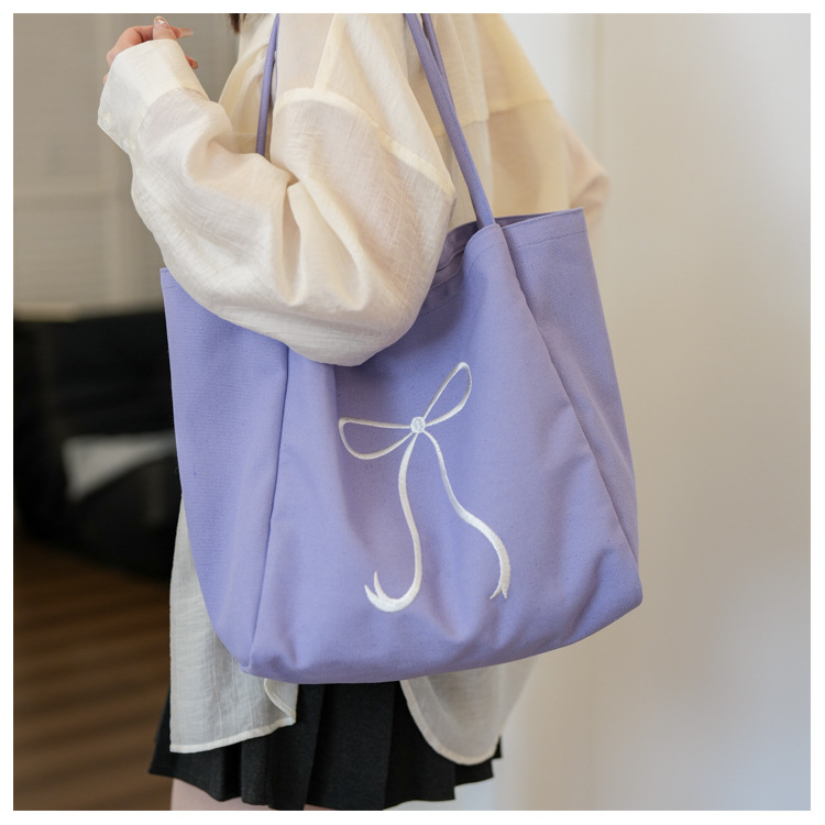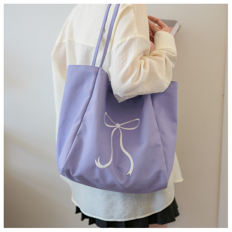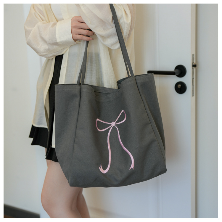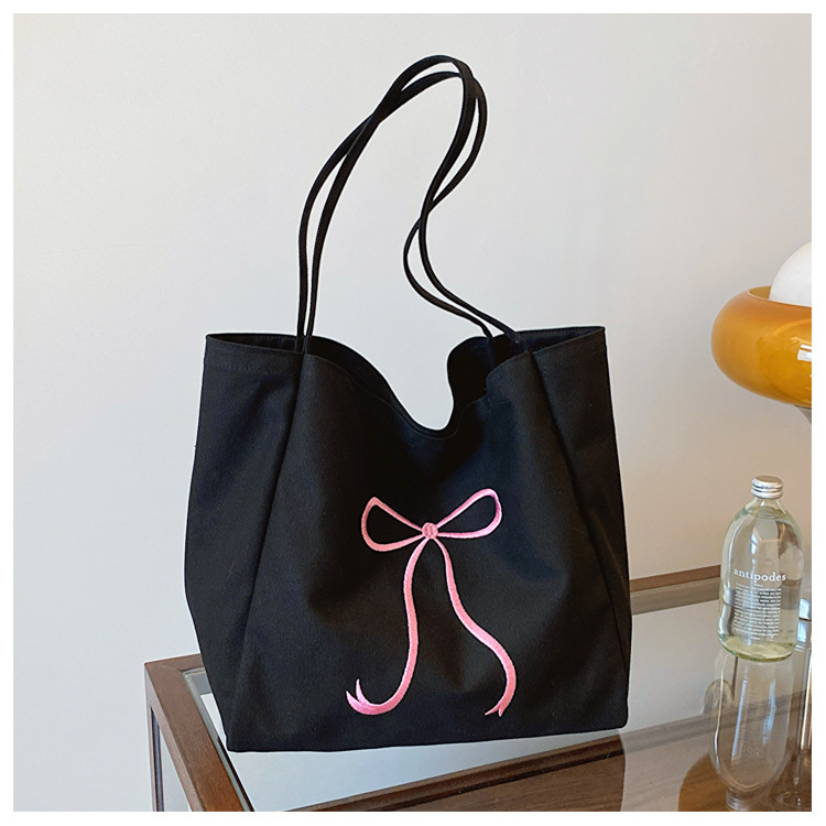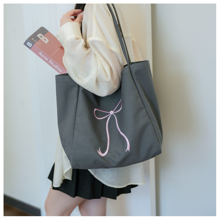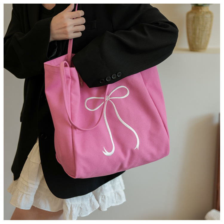 大容量蝶結び刺繍ズックトートバッグ女性少女ハートかわいいワンショルダーバッグ通勤通勤手提げ
