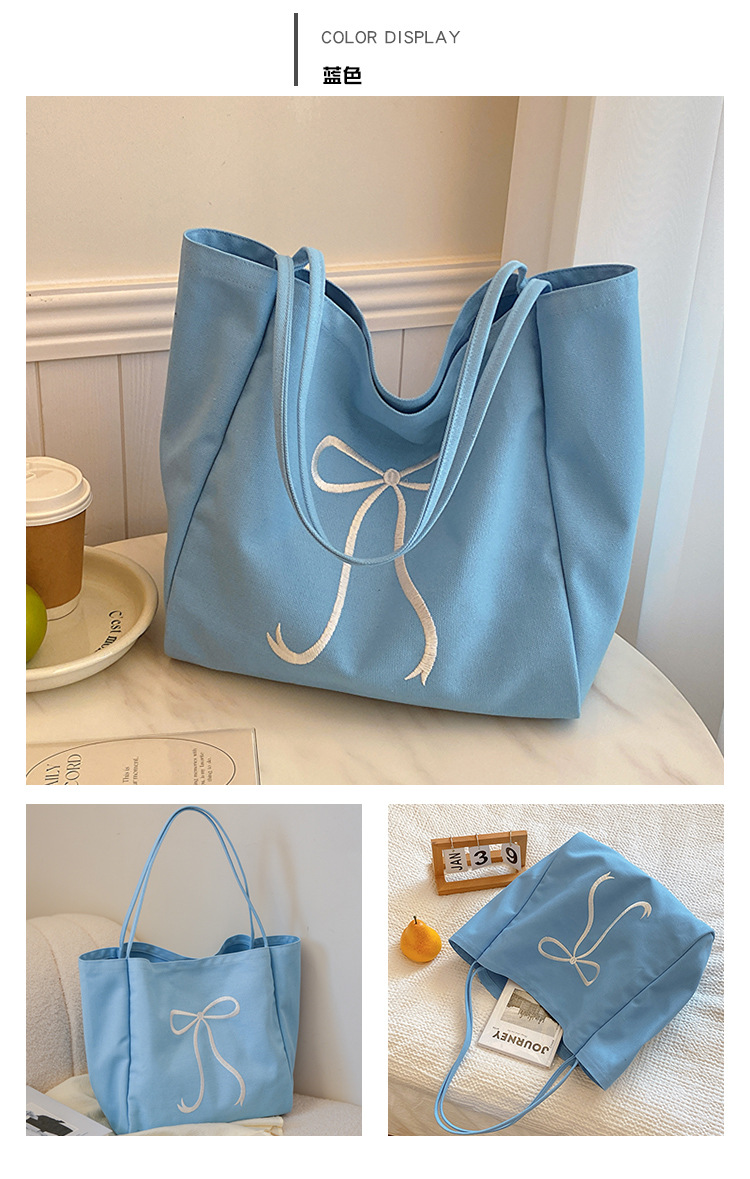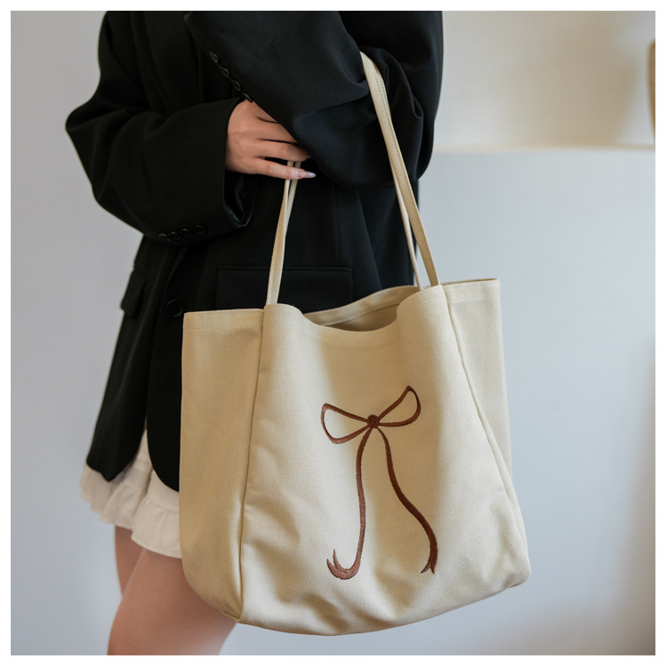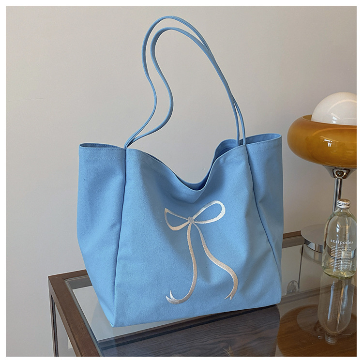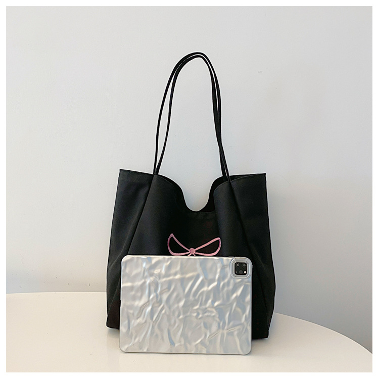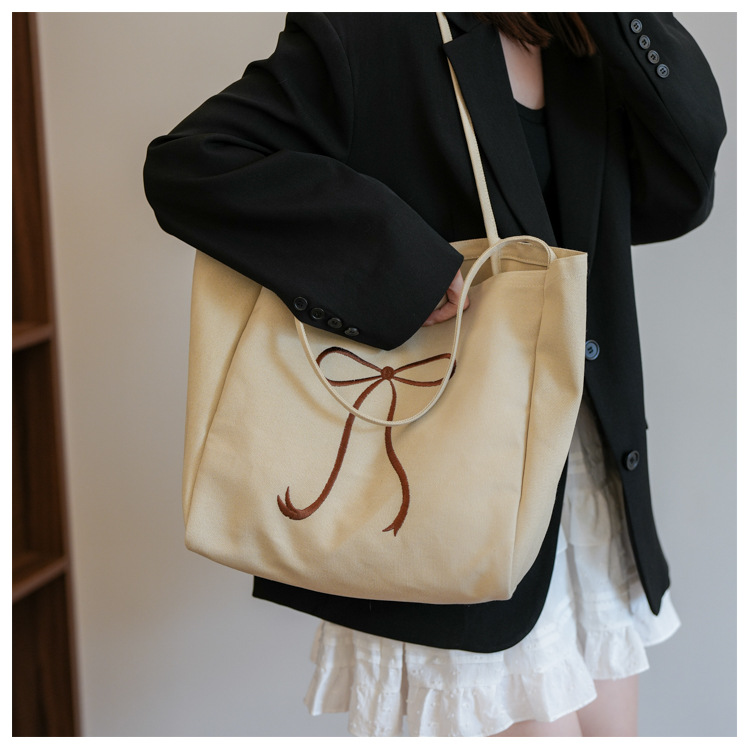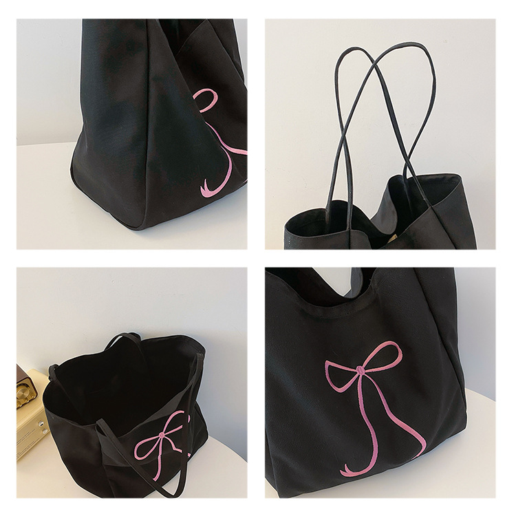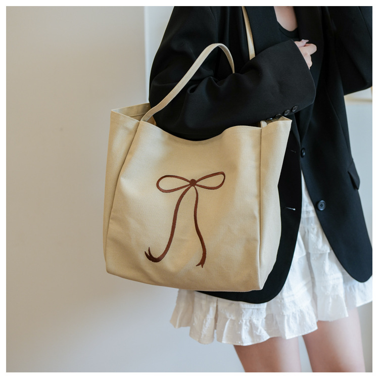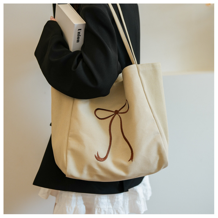 大容量蝶結び刺繍ズックトートバッグ女性少女ハートかわいいワンショルダーバッグ通勤通勤手提げ