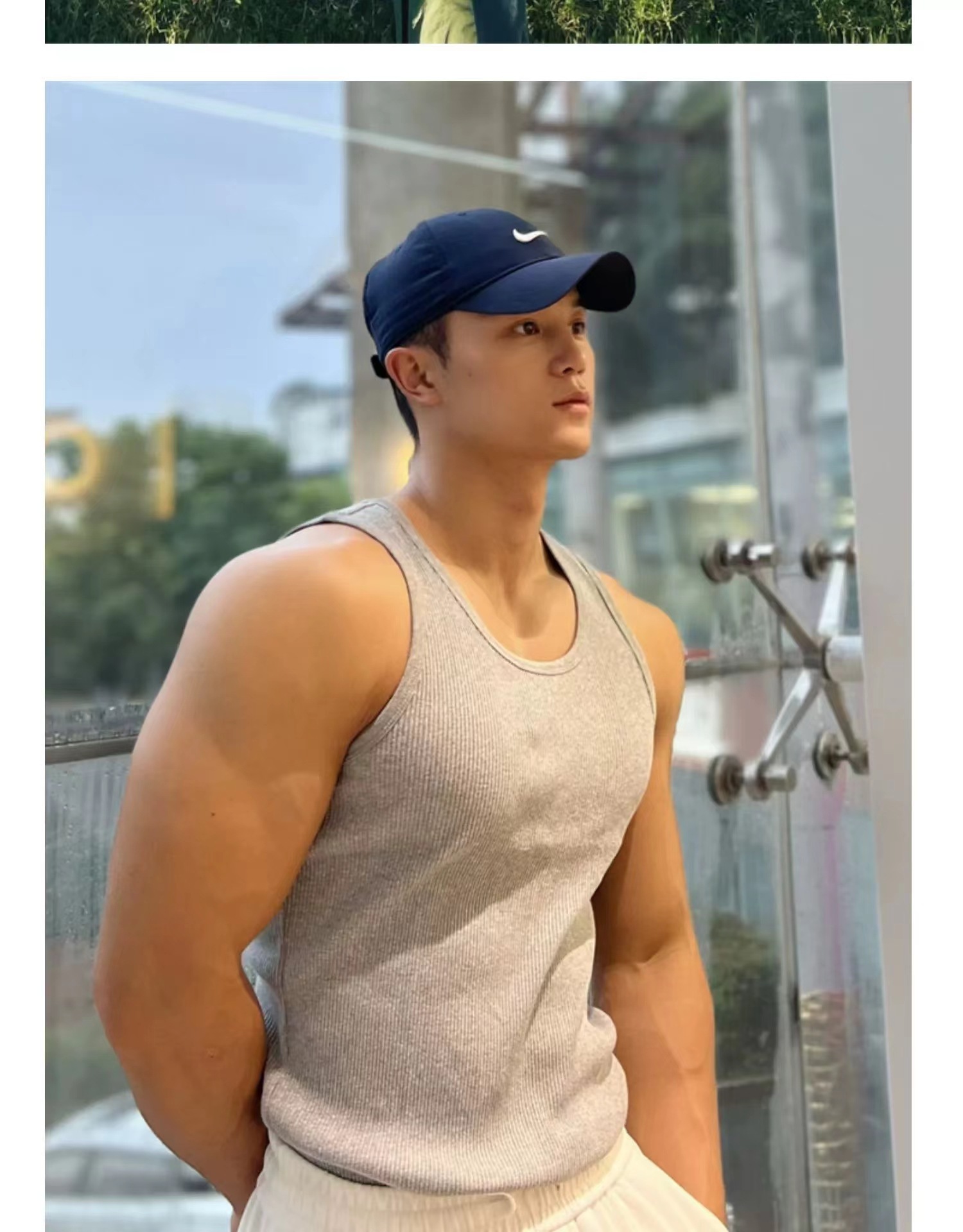 男性ベスト男性フィットネスアメリカ重ポンド280g修身太いねじノースリーブカン肩のシャツが汗を吸って震えている