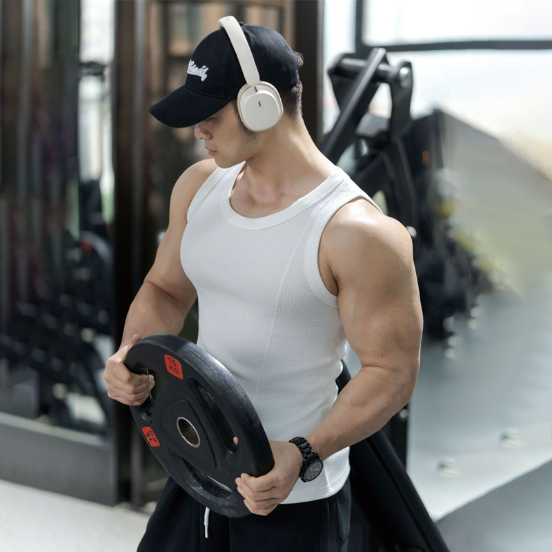 箱入りツーリングレトロホワイトコットンフィットネスベストスポーツオールドマンスウェットシャツハードルヘビーネジベストボトム男性用