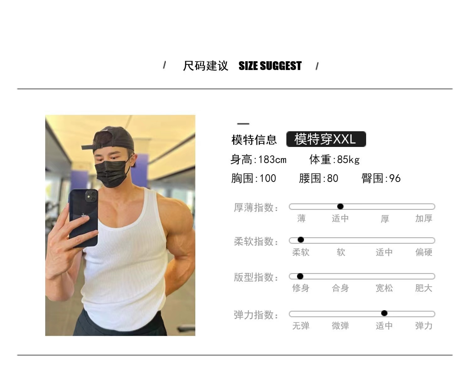 男性ベストフィットネス弾力綿ベスト厚い太いねじ230グラム2x2ベストアメリカ吸汗運動ベスト